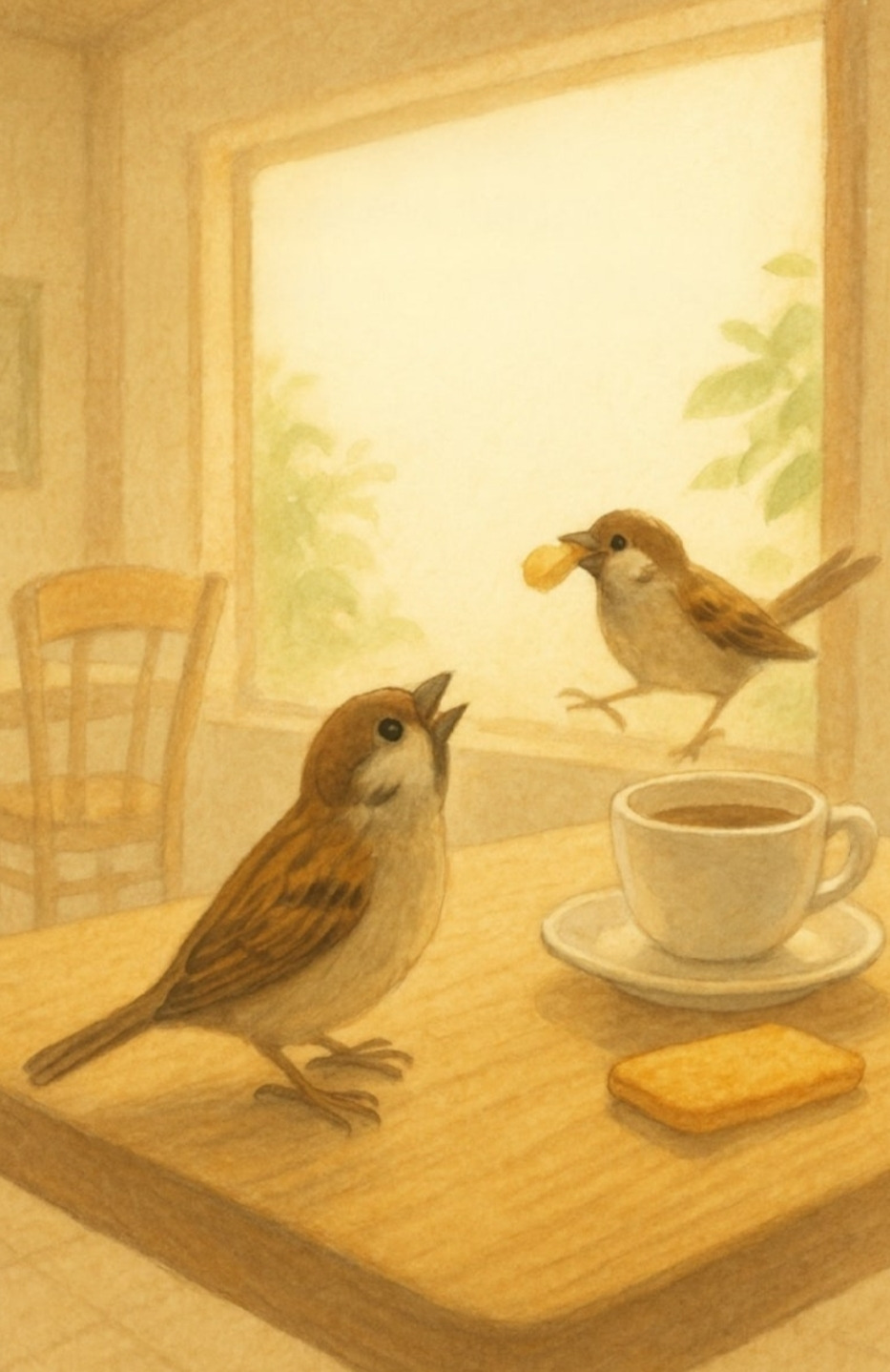 나보다 더 단골인 참새 두 마리가 산다.