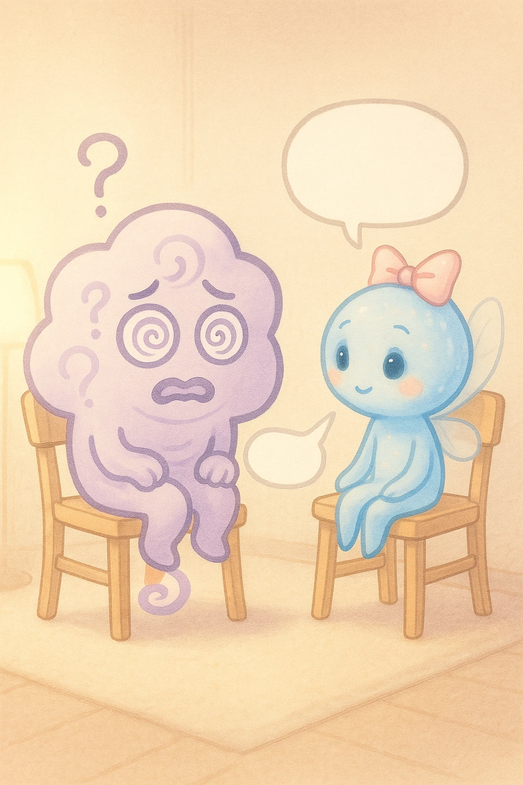 그래서 혼란이는 감각이와 함께 앉아 이야기를 나눈다.