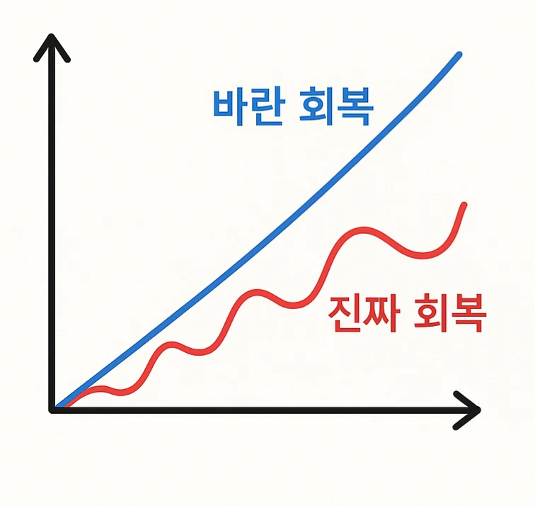 현실과 회복은 닮았다. 내가 바라는 현실과 회복은 직선이었는데, 사실은 한참 그 아래서 나는 좋았다 나빴다를 오고 갔다. 한 때, 한참 의욕이 앞서 공부했던 미주식 그래프를 닮은 것 같기도 하다.