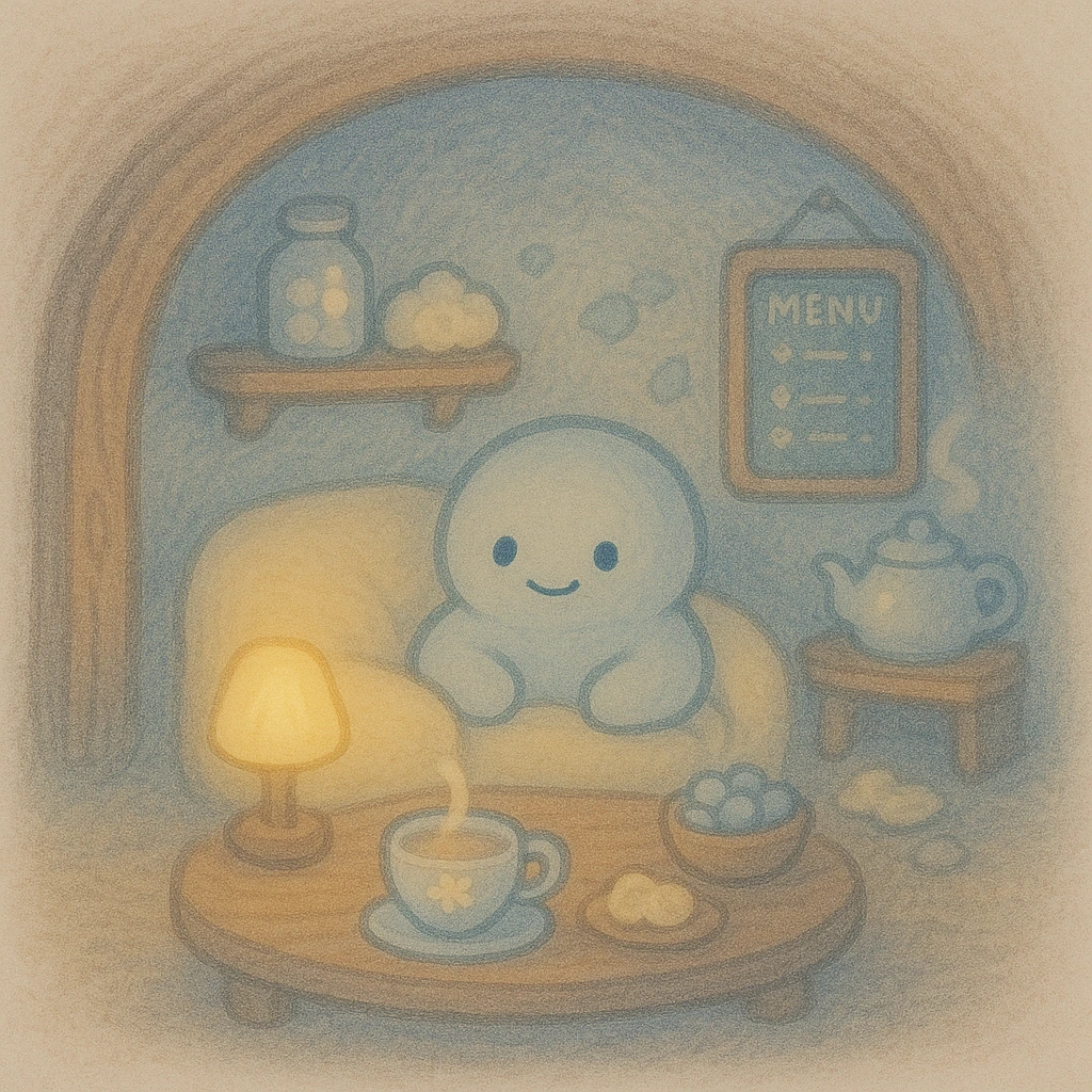 내가 지쳤을 때 여기 앉으면, 감정이들이 차례로 “괜찮아” 하고 말해준다. 따뜻한 이불을 덮어주고 난로를 켜주고 내가 제일 좋아하는 감정꽃차랑 몽글 구름쿠키를 가져다준다.
