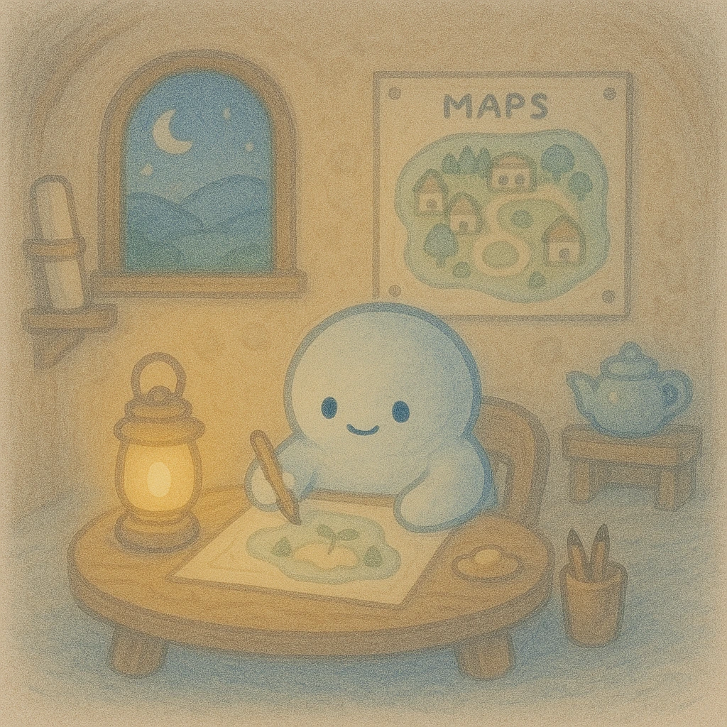 감정이들이 자라서 감정대륙으로 떠나기 전, 자기 방과 뿌리를 그리고 기록하는 곳이다. 아직, 다 완성되지 않았지만 감정친구들이 자기가 본래 가야 할 곳을 잊지 않게 여러 장의 지도를 만들어 놓는다.