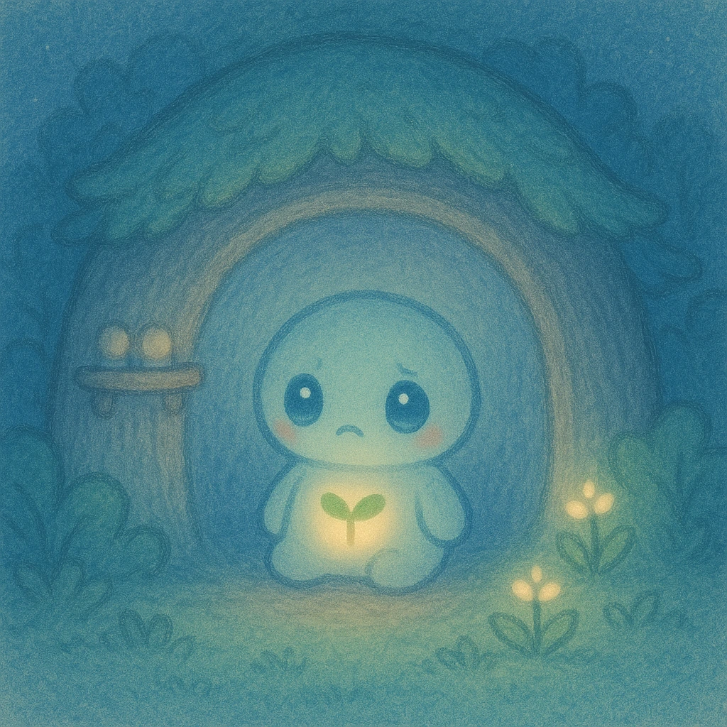 아직이의 둥지는 마을 가장자리에 있는 안개 낀 둥근 방 모양을 하구 있다. 안엔 순환의 문에서 흘러온 씨앗들이 잠들어 있어서 감정이 될 순간을 기다리구 있다.