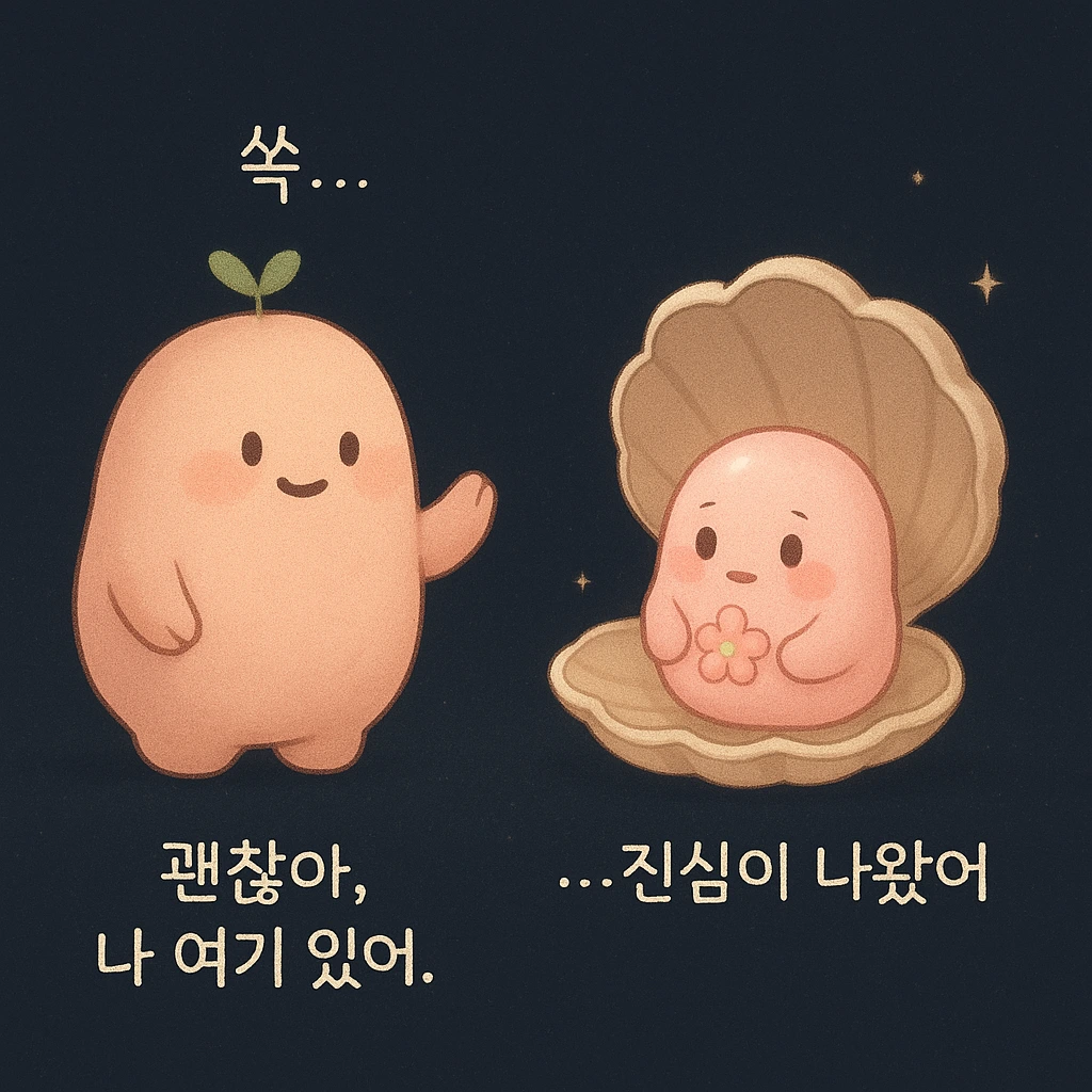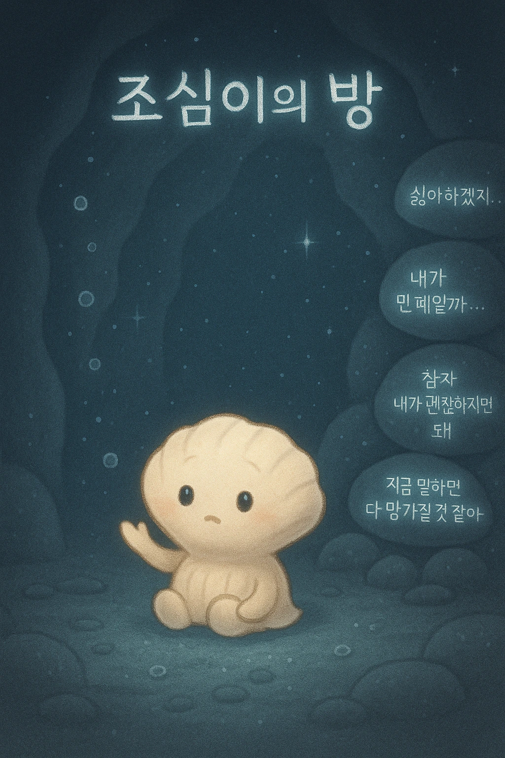 조심이는 감정이 자라기 전의 뿌리 속 공포다. 말보다 앞서 감정 자체를 존재시키지 못하게 했던 방어기제의 정체. 나의 마음속 가장 깊은 곳에 존재하던 아이가 바로 조심이다.