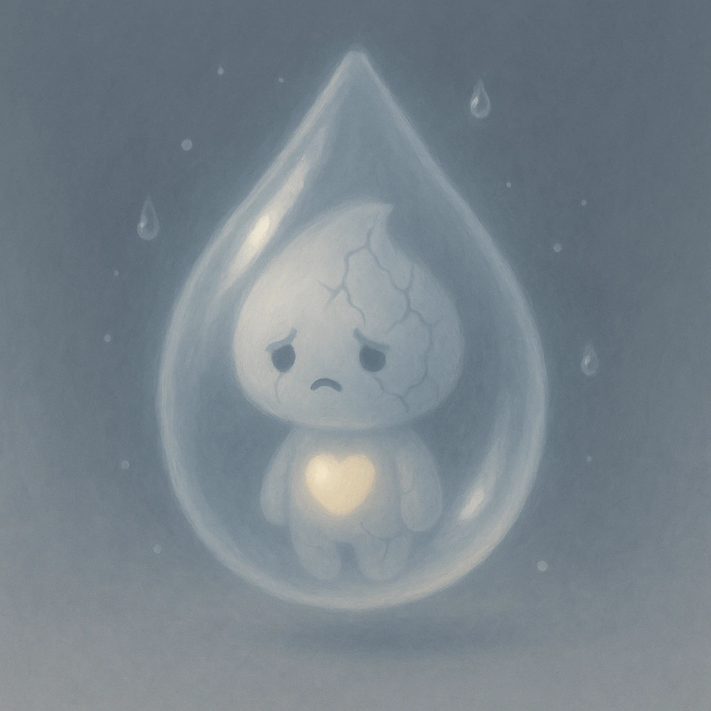 무너이는 반쯤 깨진 유리처럼 맑고 차가운 반투명한 존재다. 가슴 한가운데엔 '아직 부서지지 않은 작고 따뜻한 씨앗'이 있다. 운무이보다 더 조용하지만 온기가 있고, 걷지 않고 무너진 자리마다 연못처럼 스며 있다.