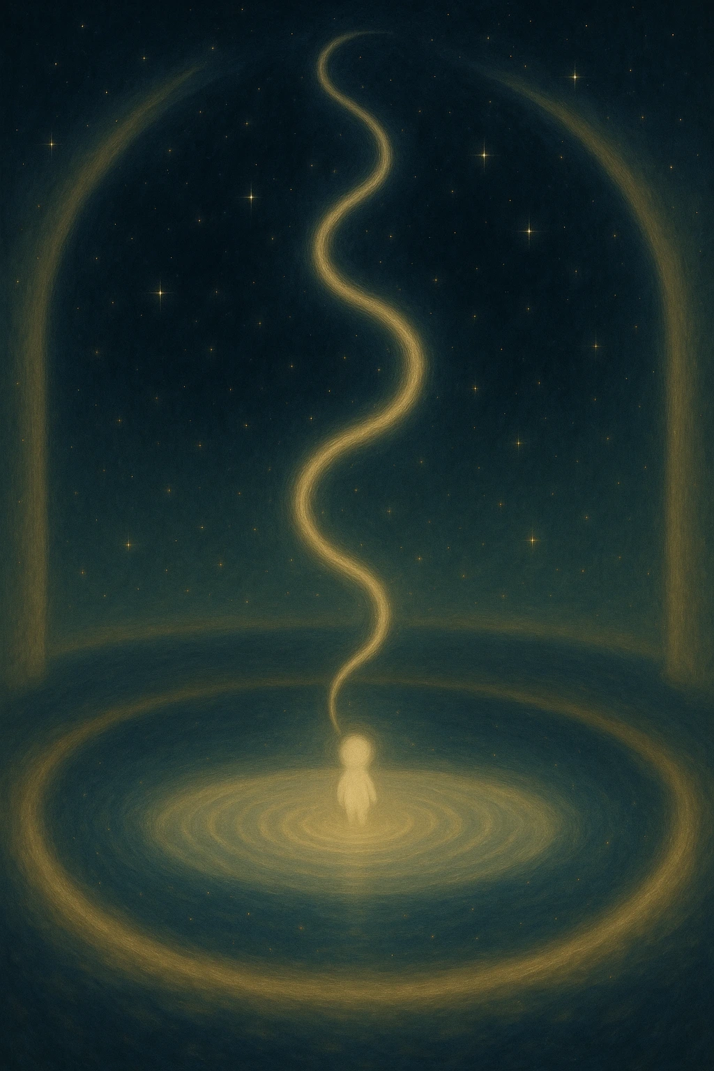 중앙에는 빛의 웅덩이가 있다. 이곳은 존재이 방의 핵심으로 물처럼 보이지만 액체가 아니다. 의식이 태어나기 직전의 감각이 파동형태로 고여 있는 자리다. 여기서 처음으로 감정이 될 가능성이 미세하게 일렁인다. 이 웅덩이는 말을 하지 않지만, 내가 가까이 가면 이렇게 느껴진다.