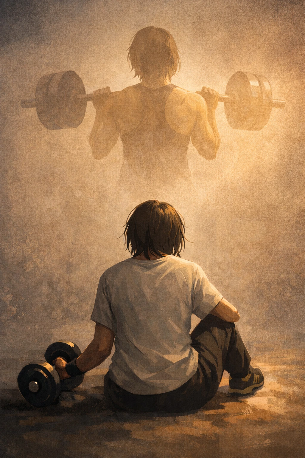 팔은 그저 덤벨을 잡고 있을 뿐