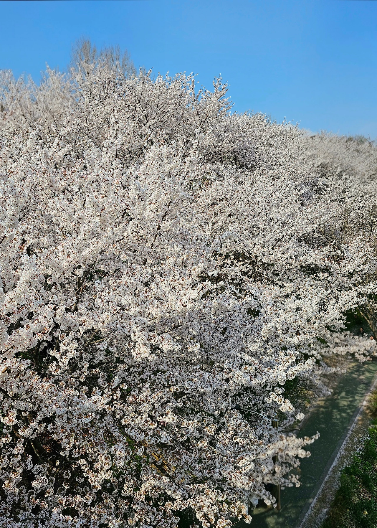 두 걸음엔 활짝 피어난 벚꽃 아래사람들이 지상을 가득 채우고 있었다.