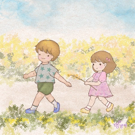 따라가는 길이 지루할까 걱정이 되었는지 꽃이 가득 달린 개나리를 꺾어 주며 오빠를 잘 따라오라 했다.