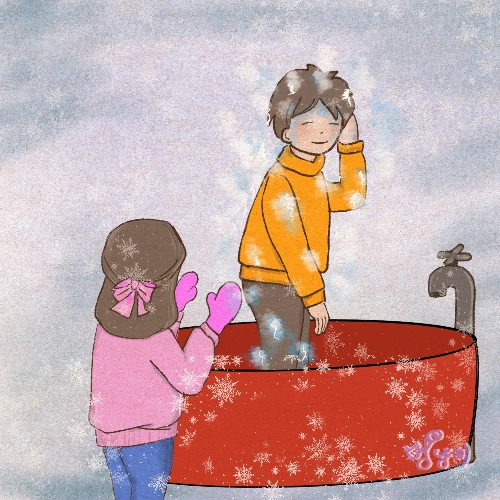 얼음은 깨지고 오빠의 몸에서는 김이 모락모락 올라오고 있었다.
