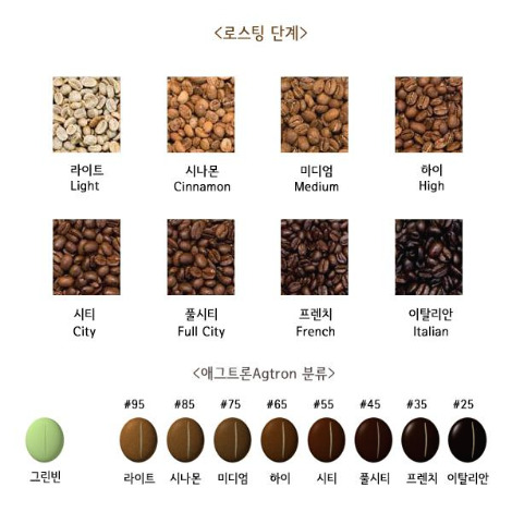 4.하이 로스트(중배전. 밤색), 일반적인 레귤러커피. 일본인이 좋아함