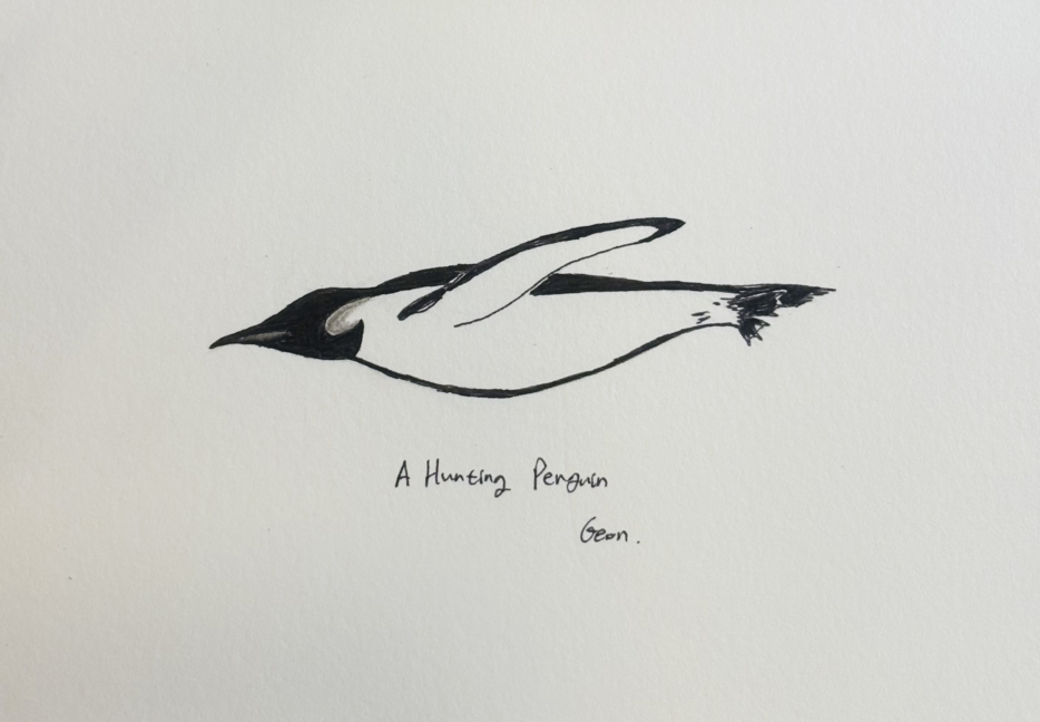 그러고는 다시 물고기를 잡으러 헤엄쳤다. 옆에 있던 펭귄이 말했다.