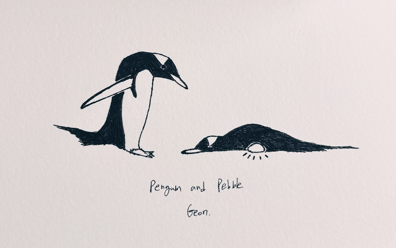 한 펭귄이 자갈밭을 걷다가 죽은 다른 펭귄의 시체를 발견했다. 펭귄은 중얼거렸다.