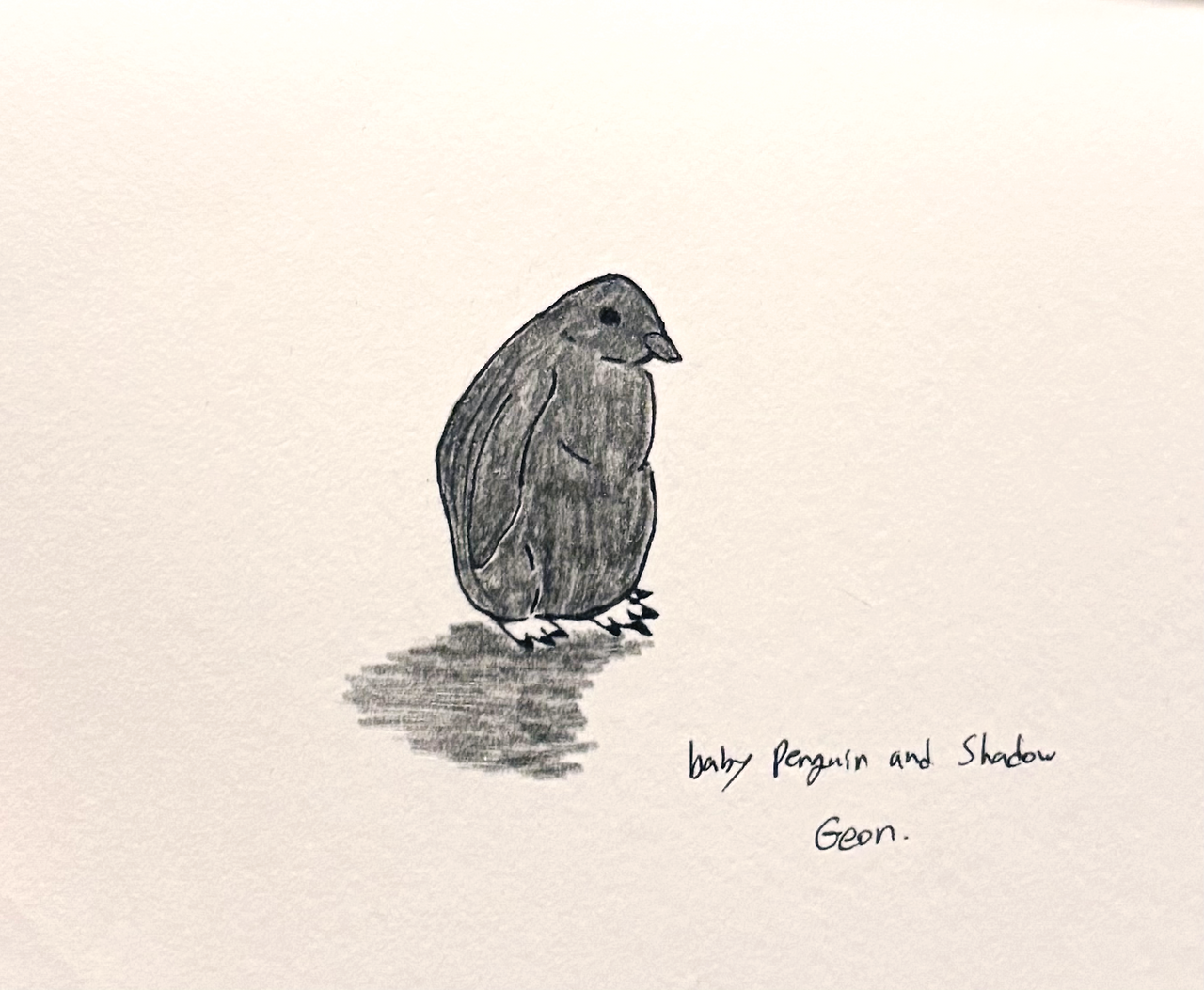 한 새끼 펭귄이 길을 걷다가 아래를 내려봤다. 새끼 펭귄 아래에는 그림자가 있었다. 새끼 펭귄은 그림자가 무서워 부리나케 달리기 시작했다. 그림자도 새끼 펭귄을 따라 달리기 시작했다.