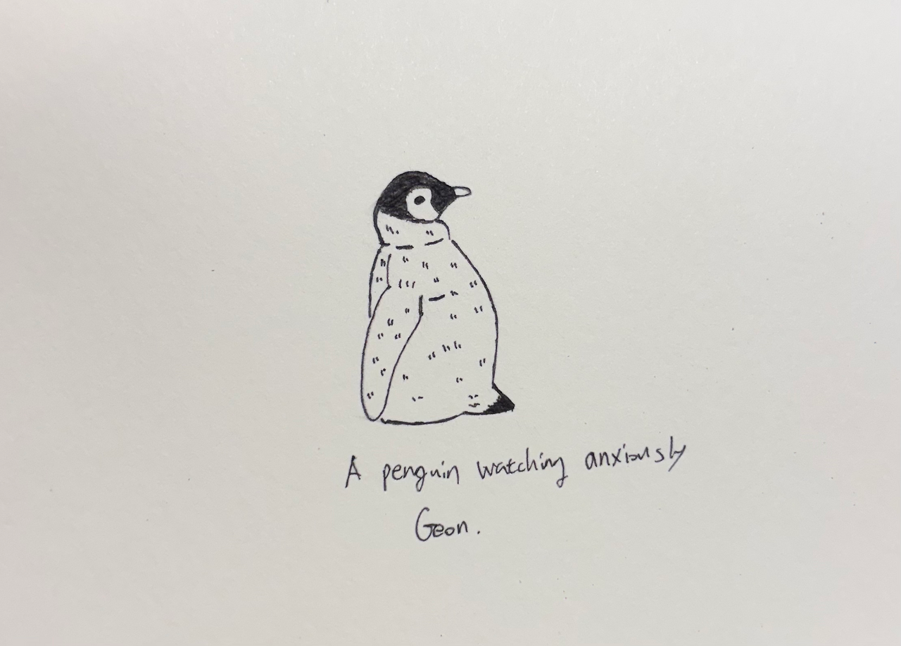 한 펭귄이 자신을 차갑게 대하는 다른 펭귄의 눈치를 살피고 있었다. 눈치를 보며 불편함을 느끼는 날은 게속되었다. 어느날 눈치를 보던 펭귄이 깨달았다.