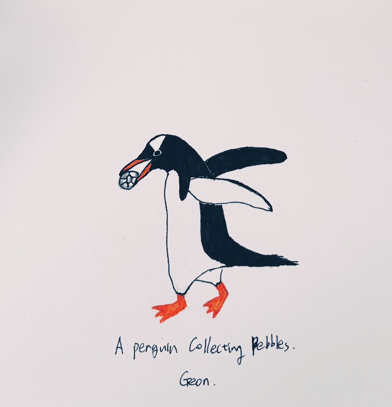 짝짓기를 위해 아주 멋지고 튼튼한 보금자리를 짓고 싶은 펭귄이 있었다. 펭귄은 매끄러우면서 튼튼한 돌멩이를 모을 것을 결심했다. 그러나 그런 돌을 모으는 것은 쉽지 않았다. 매끄러운 돌은 대부분 무르거나 쉽게 금이 갔고, 튼튼한 돌은 대부분 거칠고 울퉁불퉁했다. 어느덧 시간이 흘러 짝짓기 기간이 다가왔다. 다른 펭귄들은 저마다의 보금자리를 갖고 있었다. 그러나 돌멩이를 모으는 펭귄은 아직 보금자리를 짓지 못했다. 펭귄이 탄식하며 말했다.