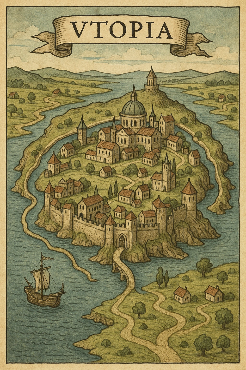 플라톤의 국가론에 바탕을 두고 있는 유토피아에는 과도하게 부가 몰리는 곳이 없으니 인민들이 궁색한 곳도 없다. 또한, 이들에게는 종교적 자유가 허락된다. 그들은 서로를 배척하기보다는 포용하고, 감싸 안으면서 인생의 같은 단계를 밟아 나간다. 이 곳 유토피아는 최소한의 법과 규칙으로 이룩한 도덕적 사회인만큼 갈등을 지양하고, 안정을 지향한다. 모두에게 이익이 될만한, 그러면서도 평화를 보장할만한 결정들을 위해 지식인들의 존재가 중요시된다.