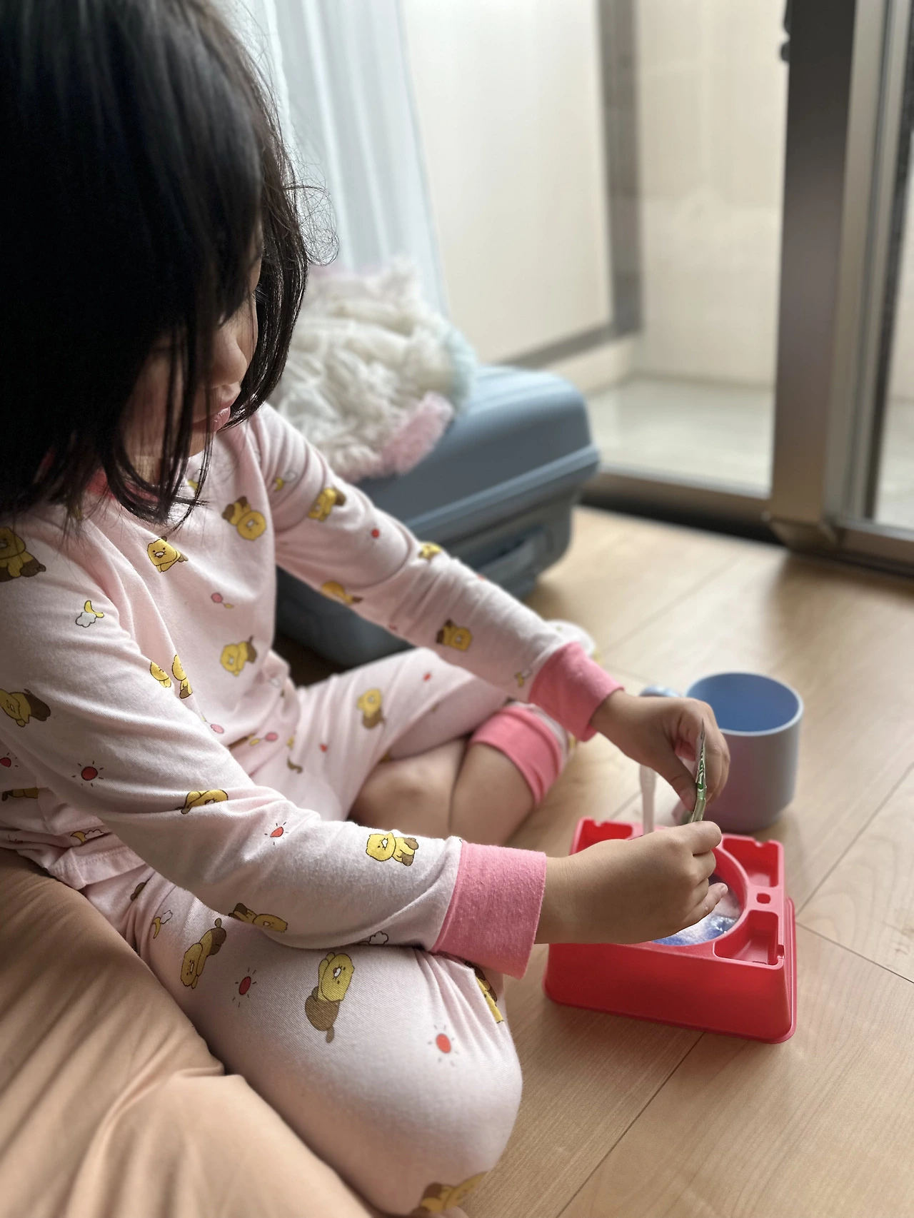 그래도 한국 피자보다 소스가 덜 매워 담이가 어찌나 잘 먹던지! 특히 남은 피자를 **"이건 오빠 줄 거야"**라며 따로 챙기는 담이의 모습에 코끝이 찡해졌습니다. 오빠를 향한 저 지극한 마음, 정말 사랑스럽지 않나요?