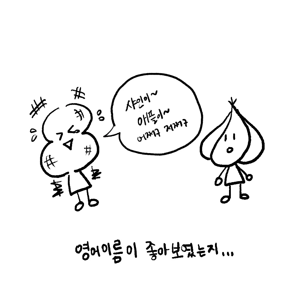 저는 영어이름을 쓰는 회사에 다니는데 그때마다 소외감을 느끼는 마늘이를 위해 영어이름을 지었답니다.