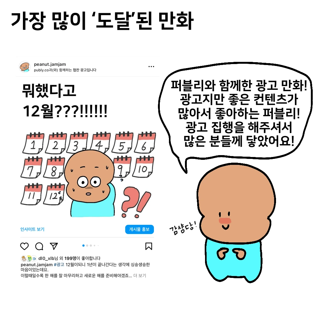 제가 좋아하는 퍼블리에서 광고 연락을 주시고 영광스럽게 협업을 진행했습니다. 퍼블리에서 광고 집행을 해주신 덕분에 해당 만화가 많은 분들에게 전달되었습니다.