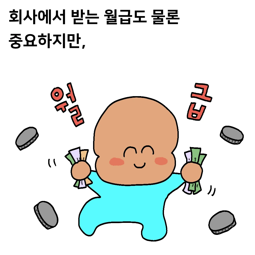 회사에서 받아갈 수 있는 것은 월급이나 공짜 음료수만이 아니다. 좋은 동료들, 일하면서 알게 되는 특정 업종의 뒷이야기, 업무 프로세스, 일잘러들, 일의 보람, 성취, 성공사례… 돈 말고도 얻어가려고 하면 얻을 수 있는 것들이 분명 있다고 믿고 싶다.