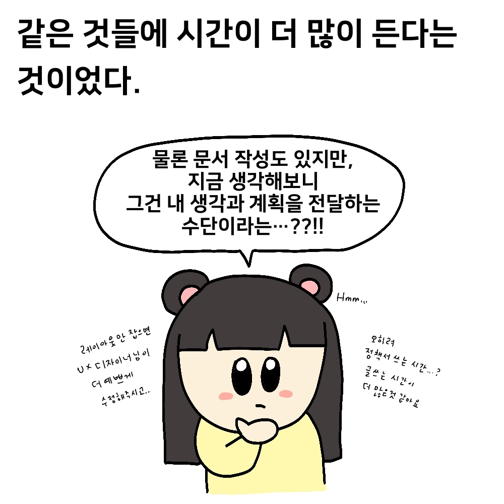 문서를 만들 때는 문서의 템플릿이나 꾸밈보다는 그 안에 담긴 콘텐츠가 중요하고, 그것을 함께 일하는 동료들에게 잘 전달하는 것이 더 중요하다는 얘기였다.