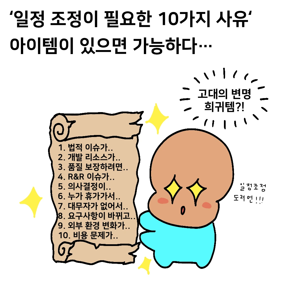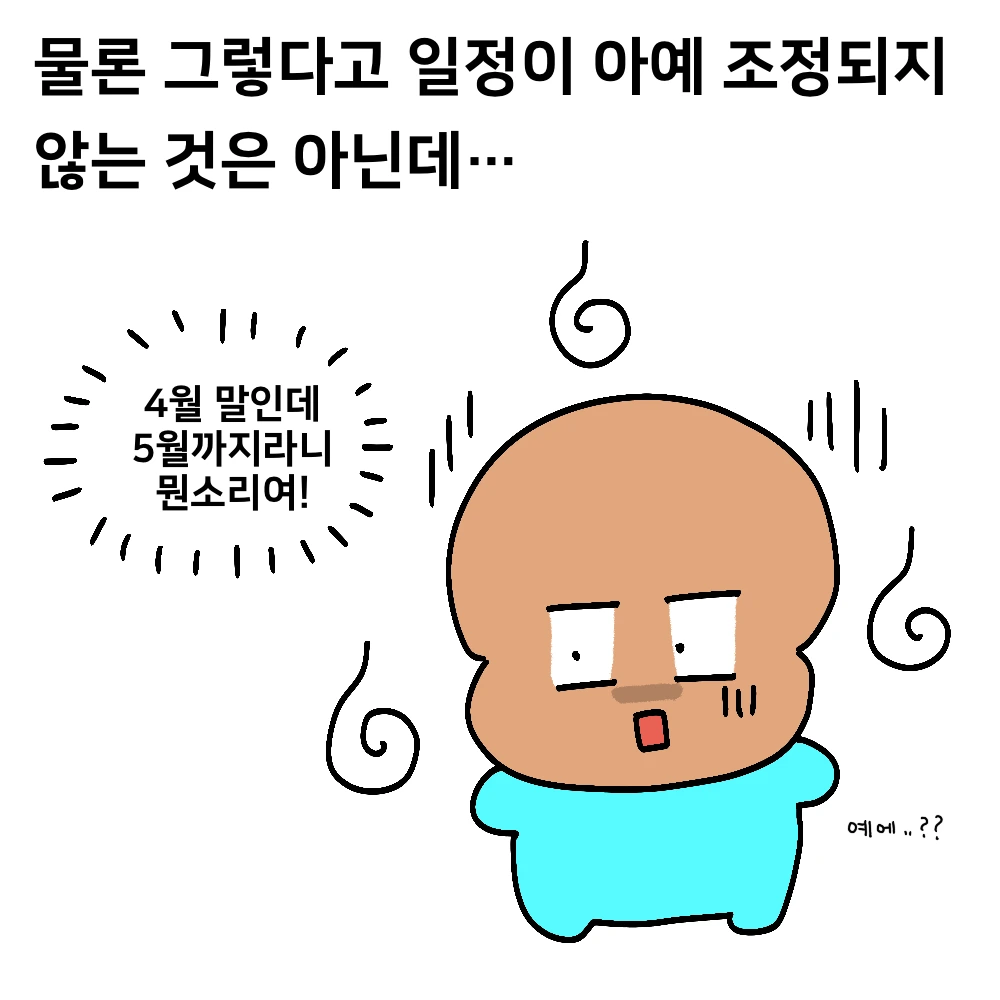 내가 겪은 일정 변경의 어려움을 유머 있게 녹여내려고 노력해 보았다!