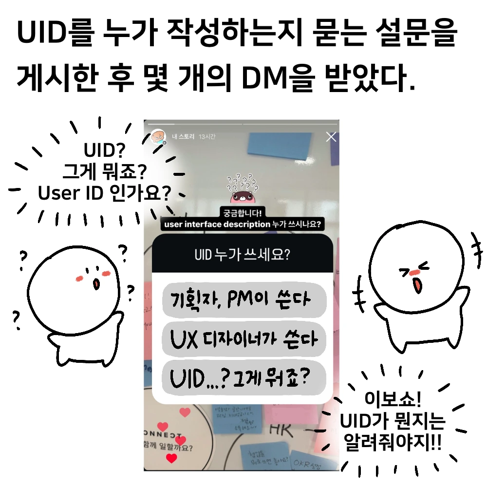인스타그램 스토리로 “UID를 누가 작성하시나요? 기획자? PM? UX디자이너? “ 하고 설문을 올렸다.