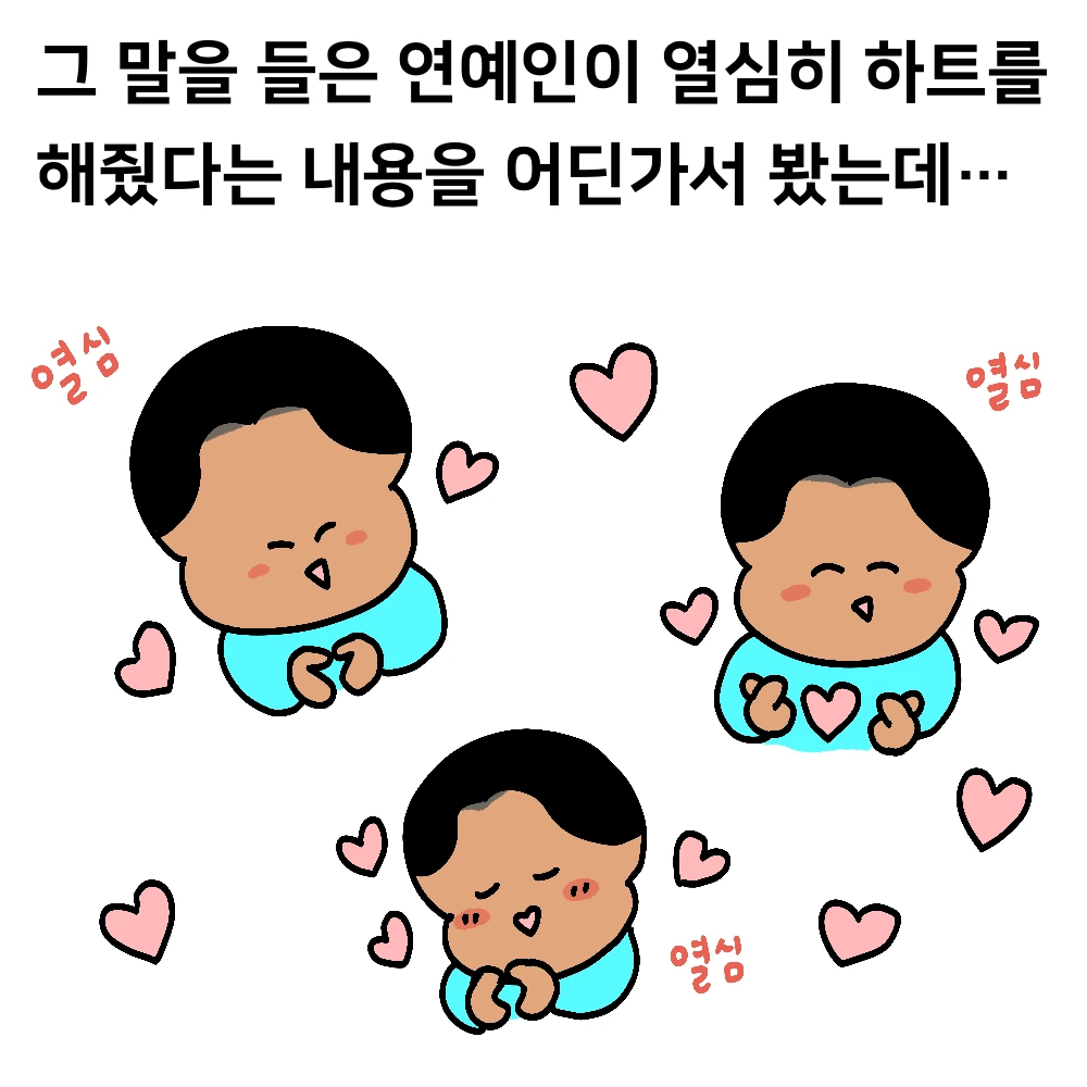 그 말을 들은 이후 열심히 애교도 부리고 하트도 했다는 이야기였다.