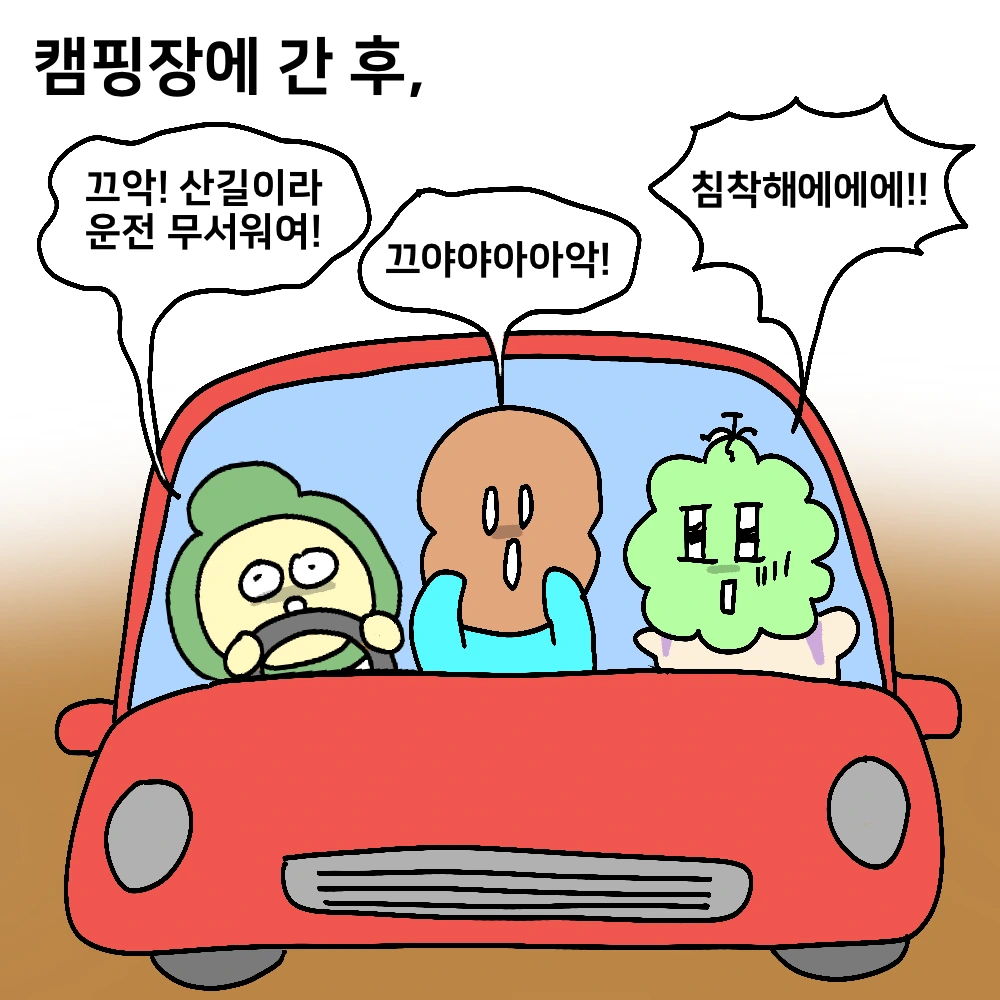 마트에서 먹을 것을 잔뜩 사고, 캠핑장으로 향했다.
