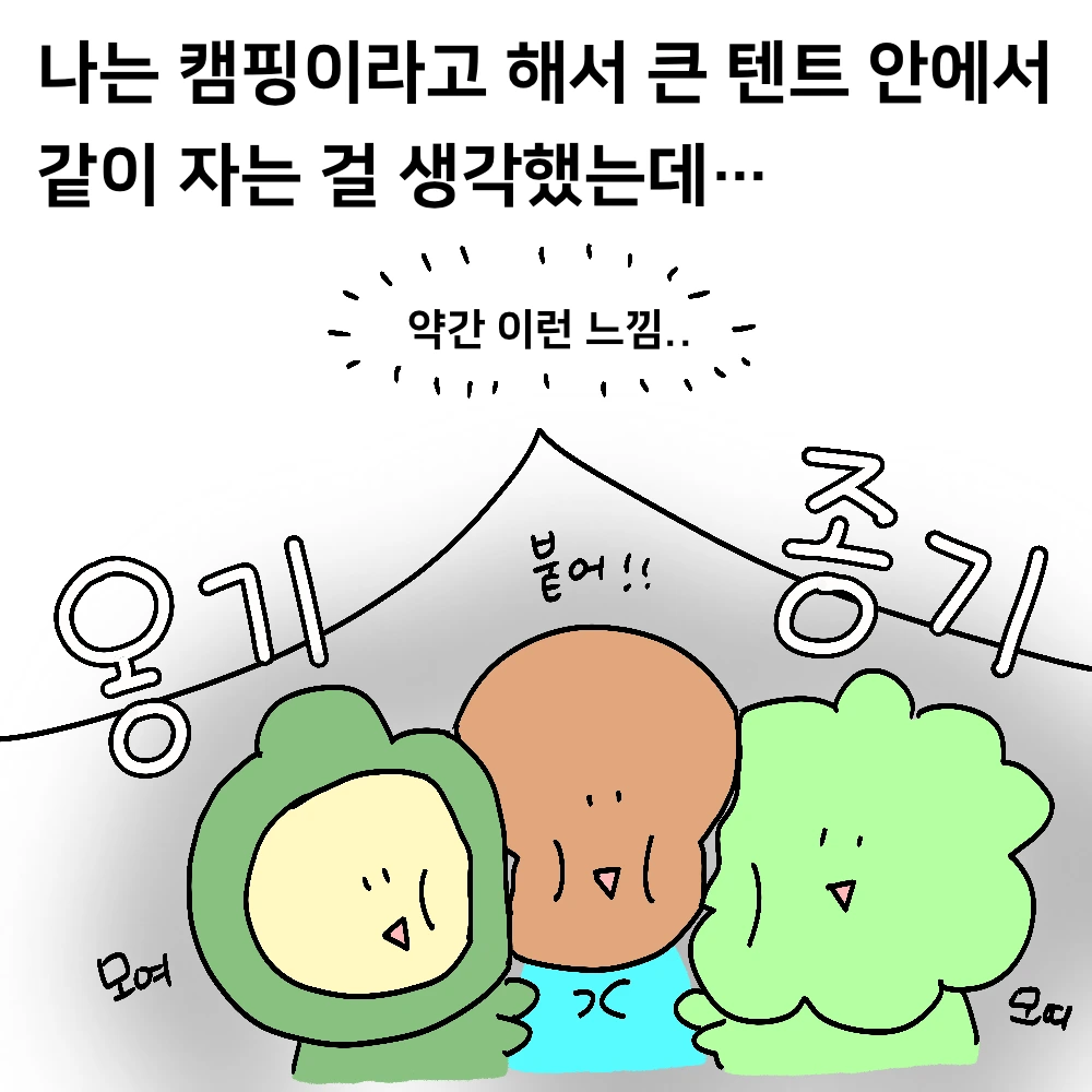 나는 큰 텐트에서 다 같이 자는 모습을 생각했는데,