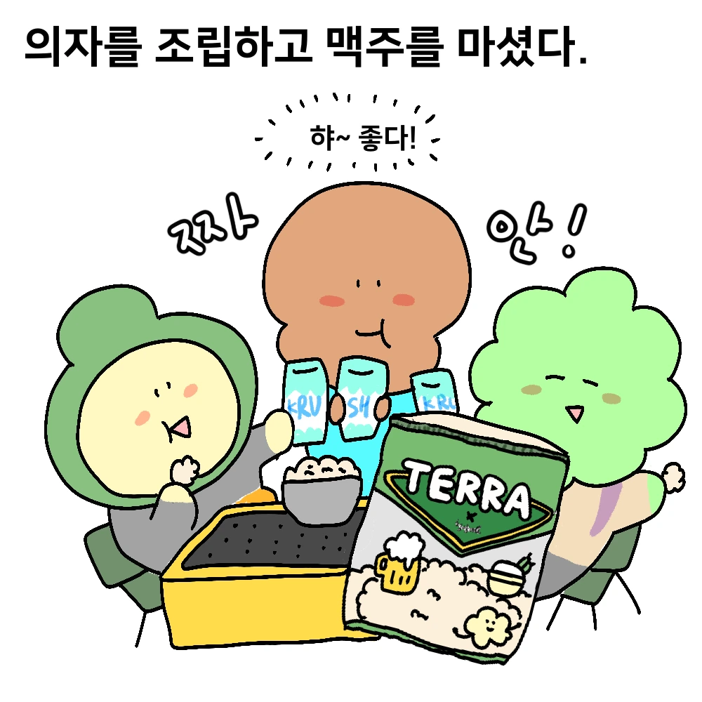 캠핑장에 자리를 잡고 의자를 조립한 후,