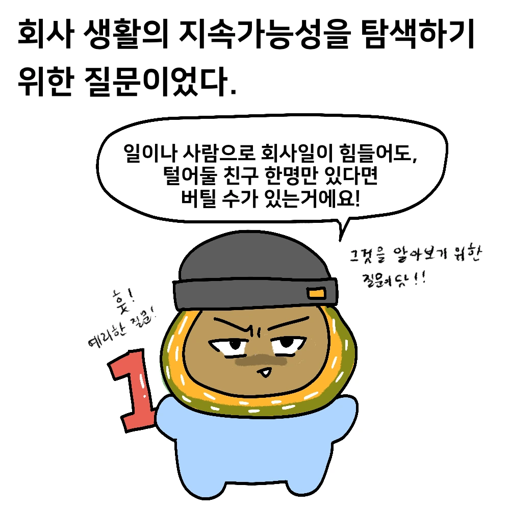 예전에는 퍽 불편했던 질문이었는데, 지금 생각해 보니 회사를 오래 다닐 수 있는지 점쳐볼 수 있는 질문 맞는 것 같다.