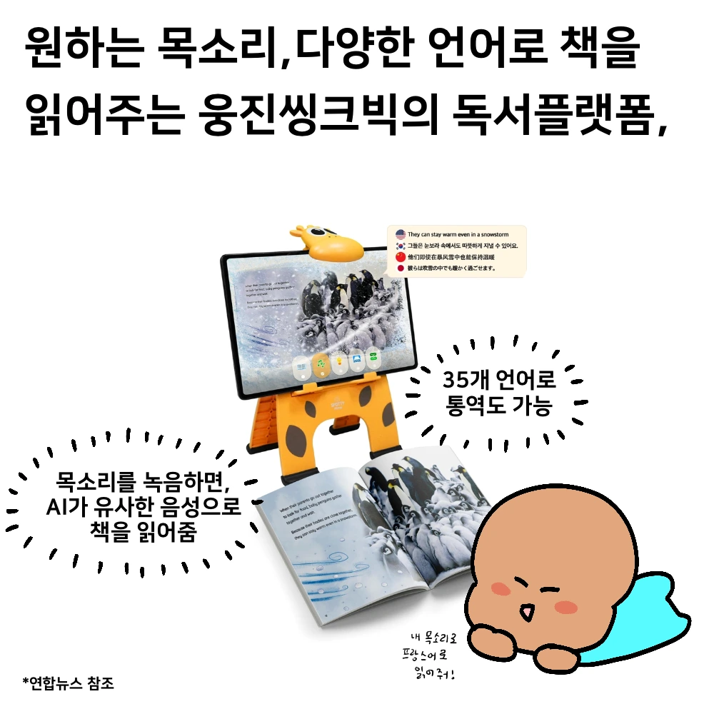 - 웅진싱크빅의 ‘Book Story’ - AI 기반 읽기 플랫폼으로 CES 최고 혁신상 수상했다. 나도 독서를 좋아하다 보니 관심이 가는 분야였다. 특히 목소리를 기억해서 해당 목소리로 책 읽어주는 기능도 있다고 하는데, 아이들에게 친숙한 목소리로 책을 읽어주면 집중도가 높아질 것 같다. 참고로, 웅진씽크빅 외에도 음성과 텍스트, 영상 분야에는 AI가 많이 활용되고 있다. 유튜브 영상을 업로드해서 다른 언어로 말하게끔 변환도 가능한데, 해외 진출을 노리는 유튜버라면 관심 가질 분야일 듯하다.