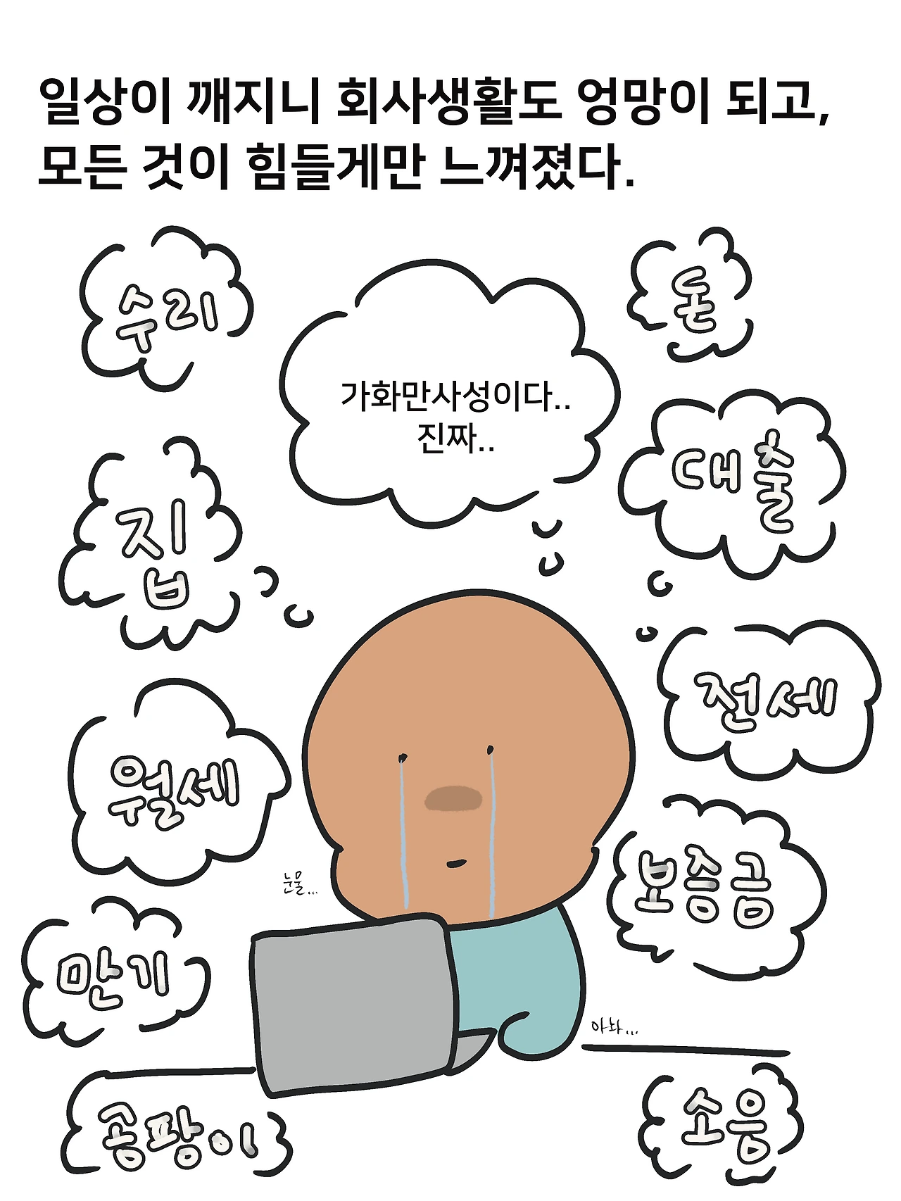주거 환경이 안정되지 않으면, 가정이 무너지면, 회사 생활도, 일상생활도 모두 도미노처럼 무너지는 것을 느끼며,