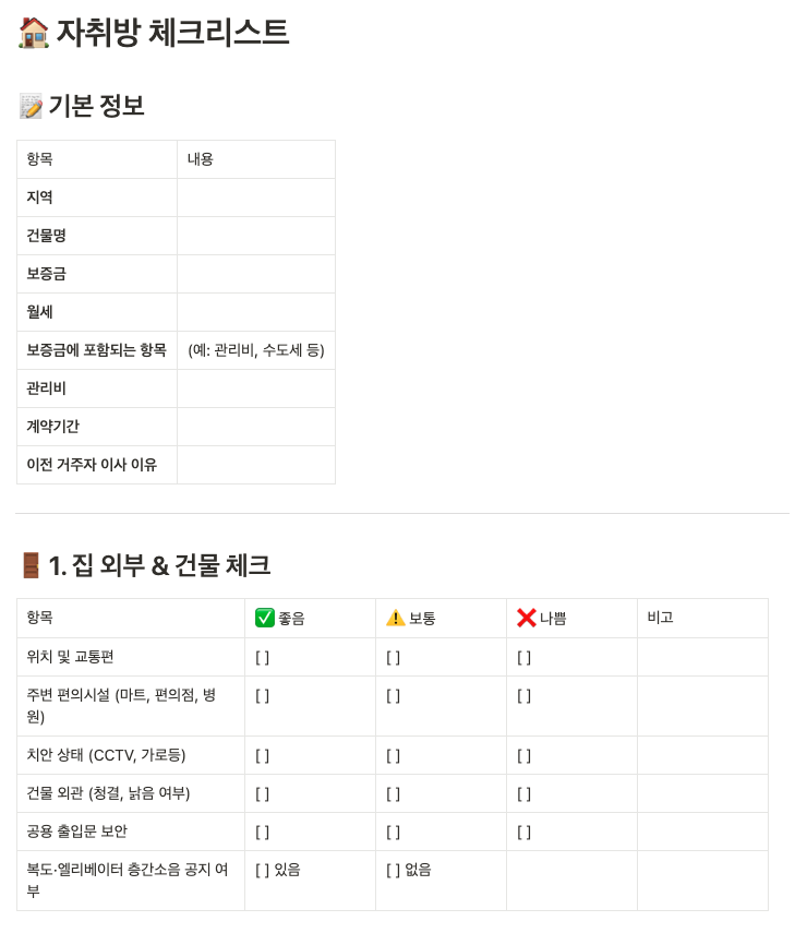 나만의 자취방 임장 체크리스트 만드는 법을 퀵하게 정리해 둔다.