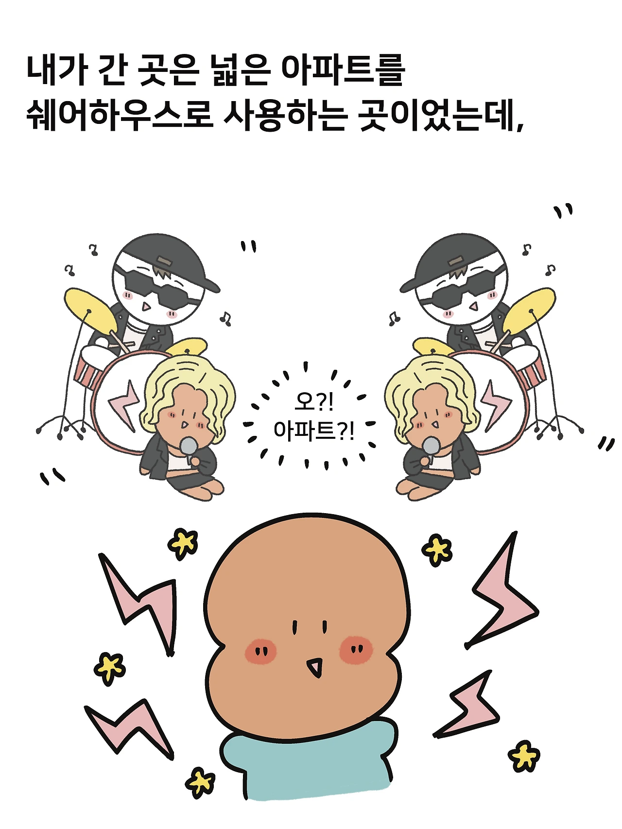 내가 간 쉐어하우스는 일반적인 아파트에서 방별로 나눠 쓰는 형태였는데,