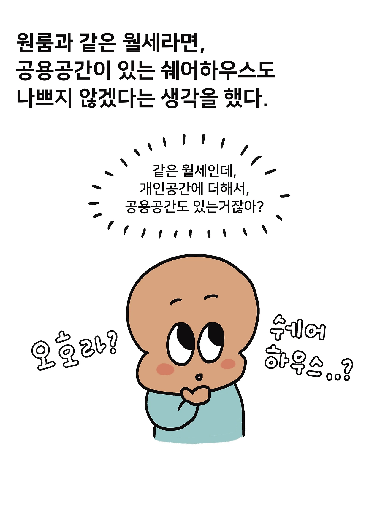 어째서 쉐어하우스를 염두했던 걸까.. 지금은 의아하기만 하다.