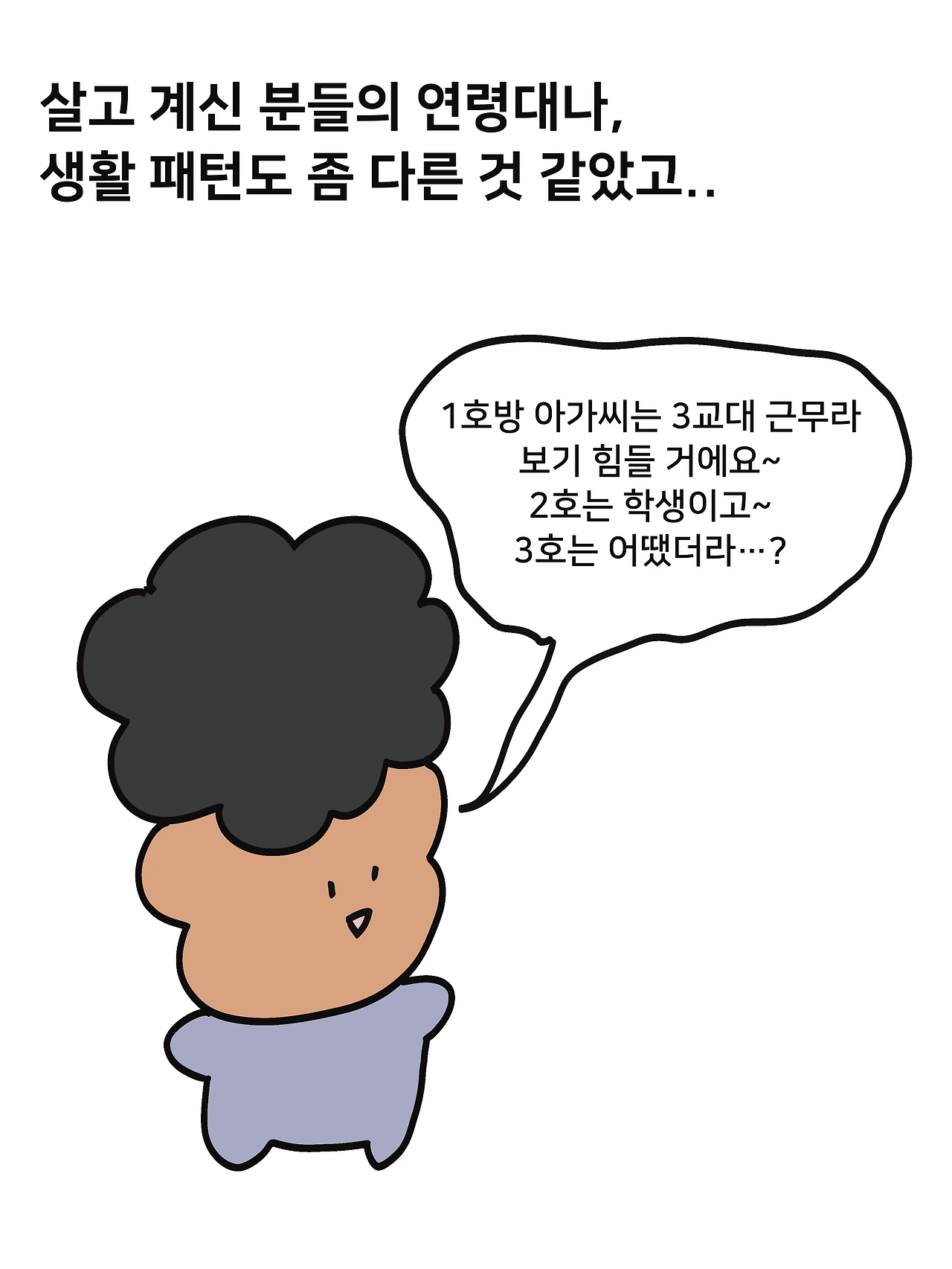 입주자분들의 연령대나 생활패턴도 다른 것 같았고,