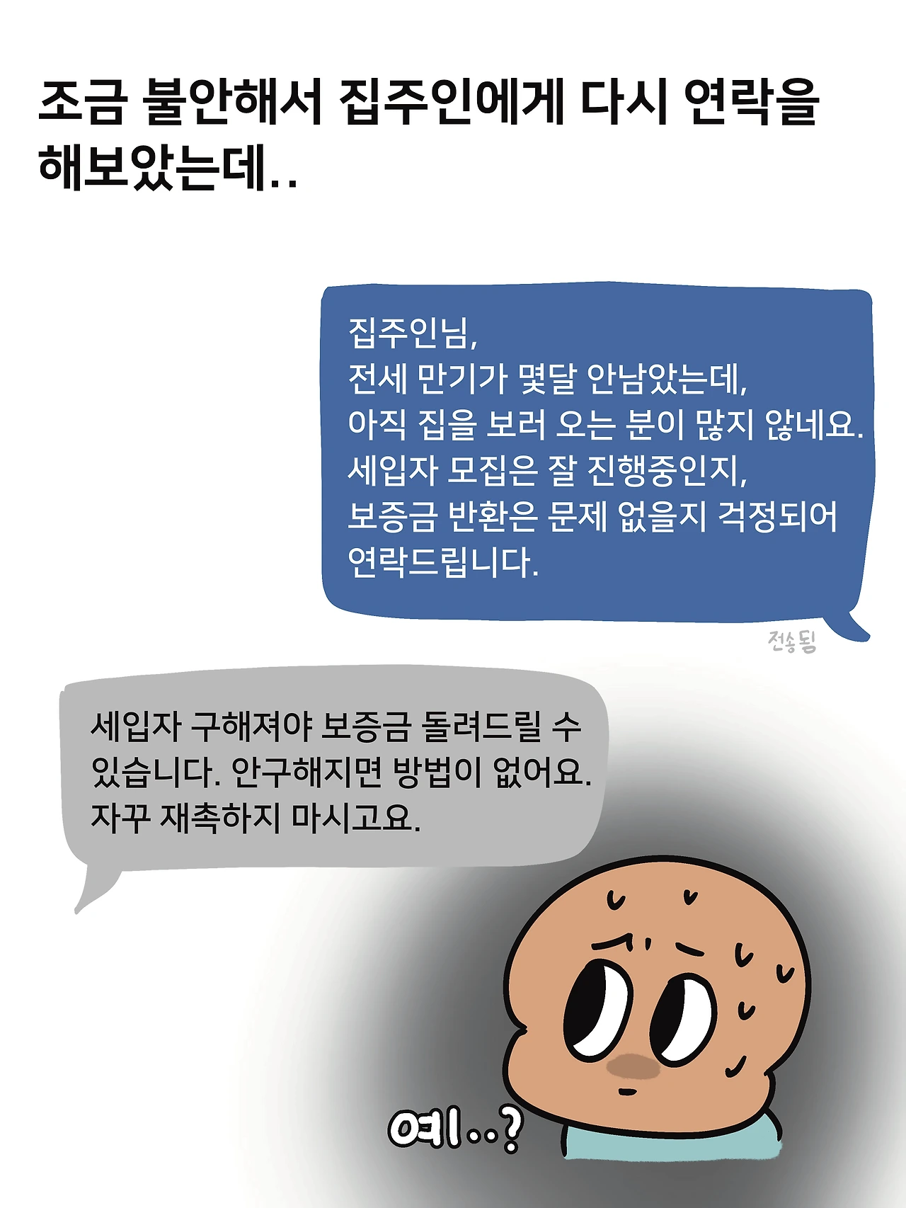 세입자가 구해지지 않으면 전세 보증금을 못 돌려준다는 답장이 돌아왔다.