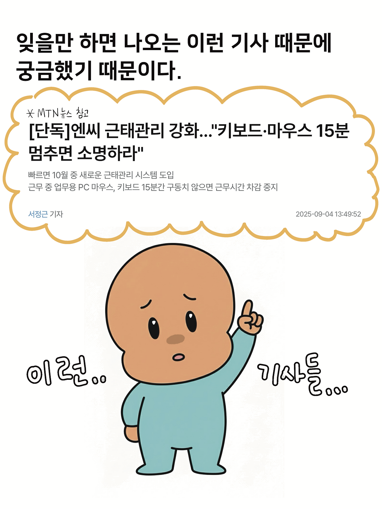 최근 NC소프트에서 마우스를 15분 이상 움직이지 않으면 소명서를 제출해야 한다는 기사를 보기도 해서,