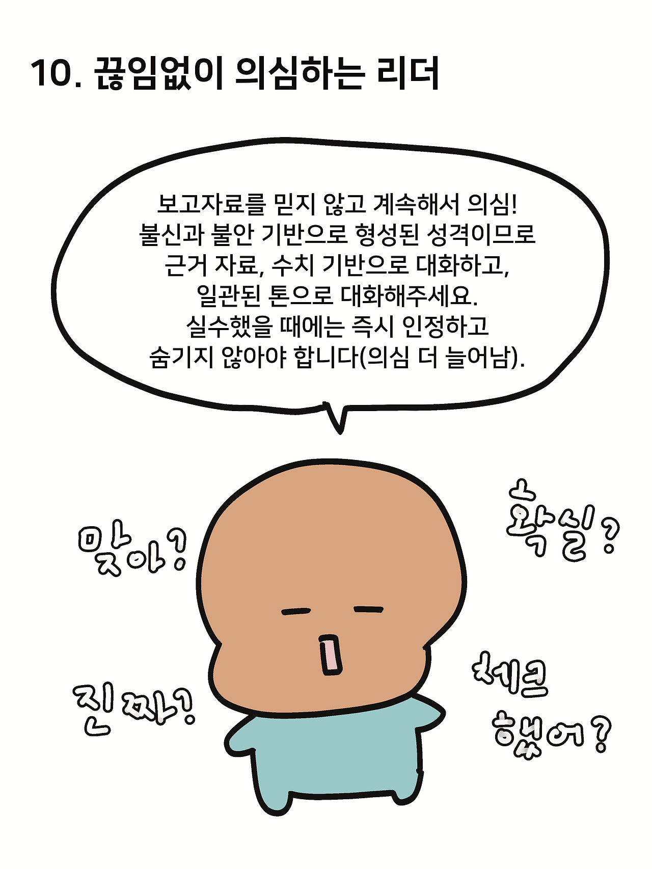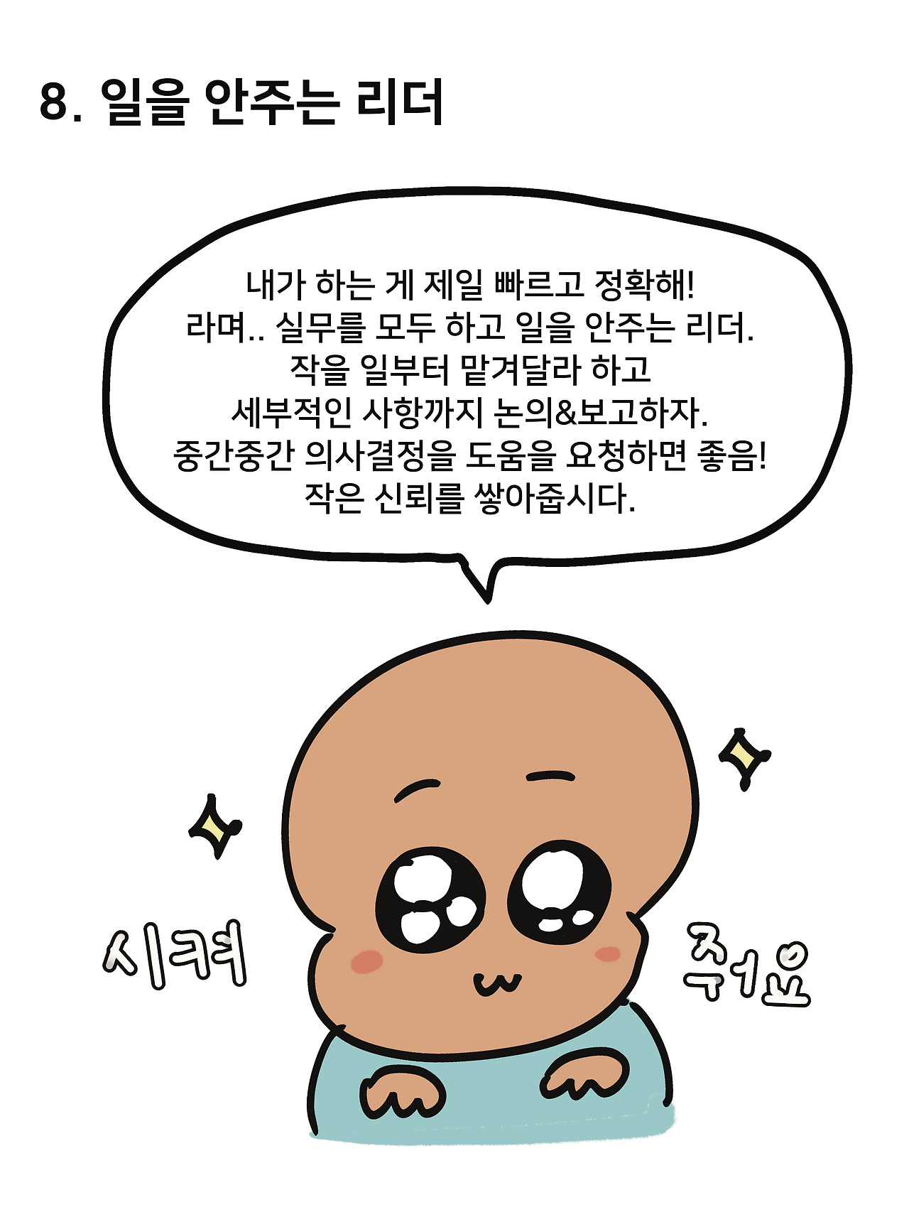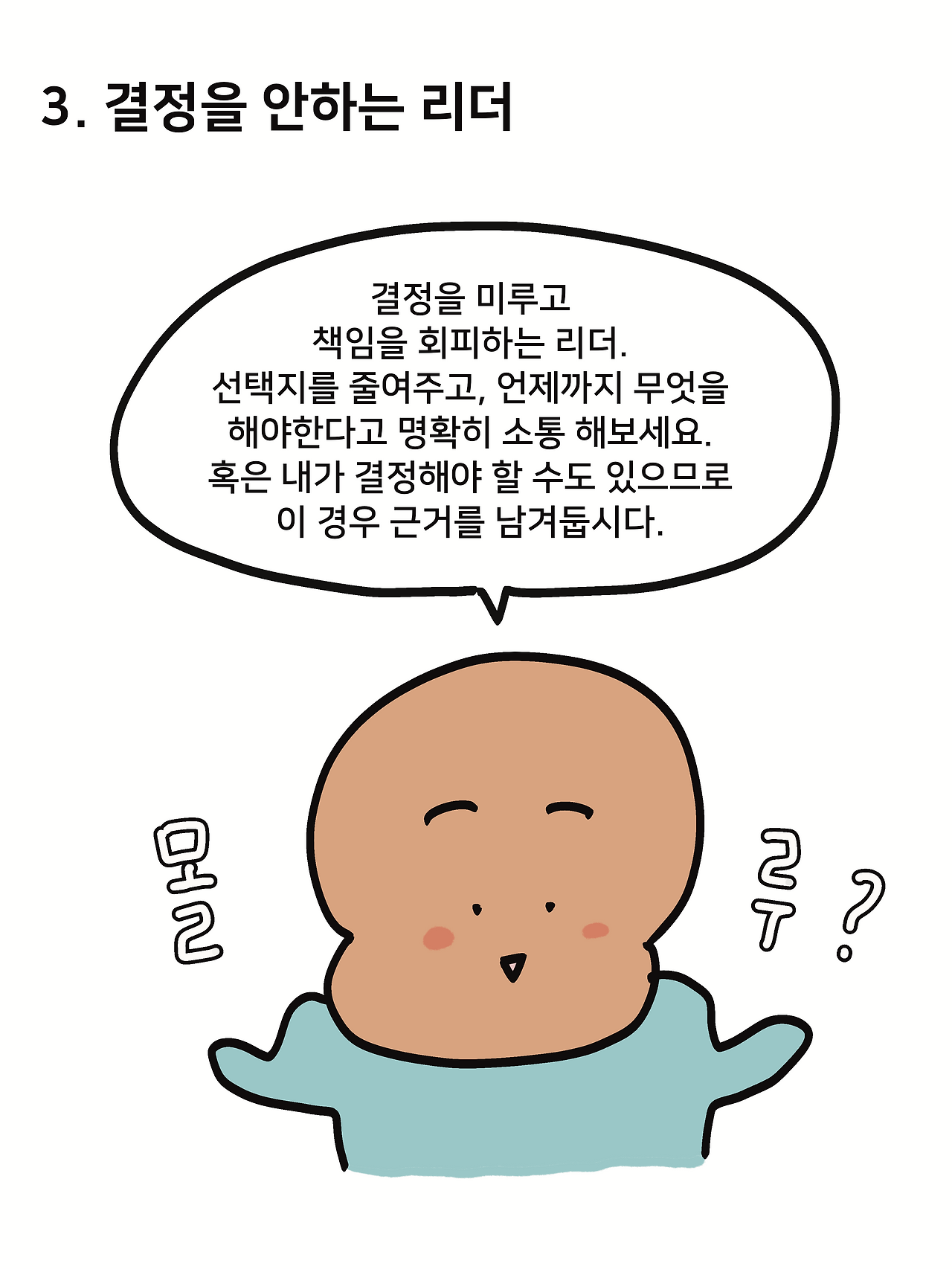 내가 직접 겪었거나, 혹은 멀리서 지켜봐 온 이상한(?) 리더들의 특징과 대응방법을 기록해 보았다.