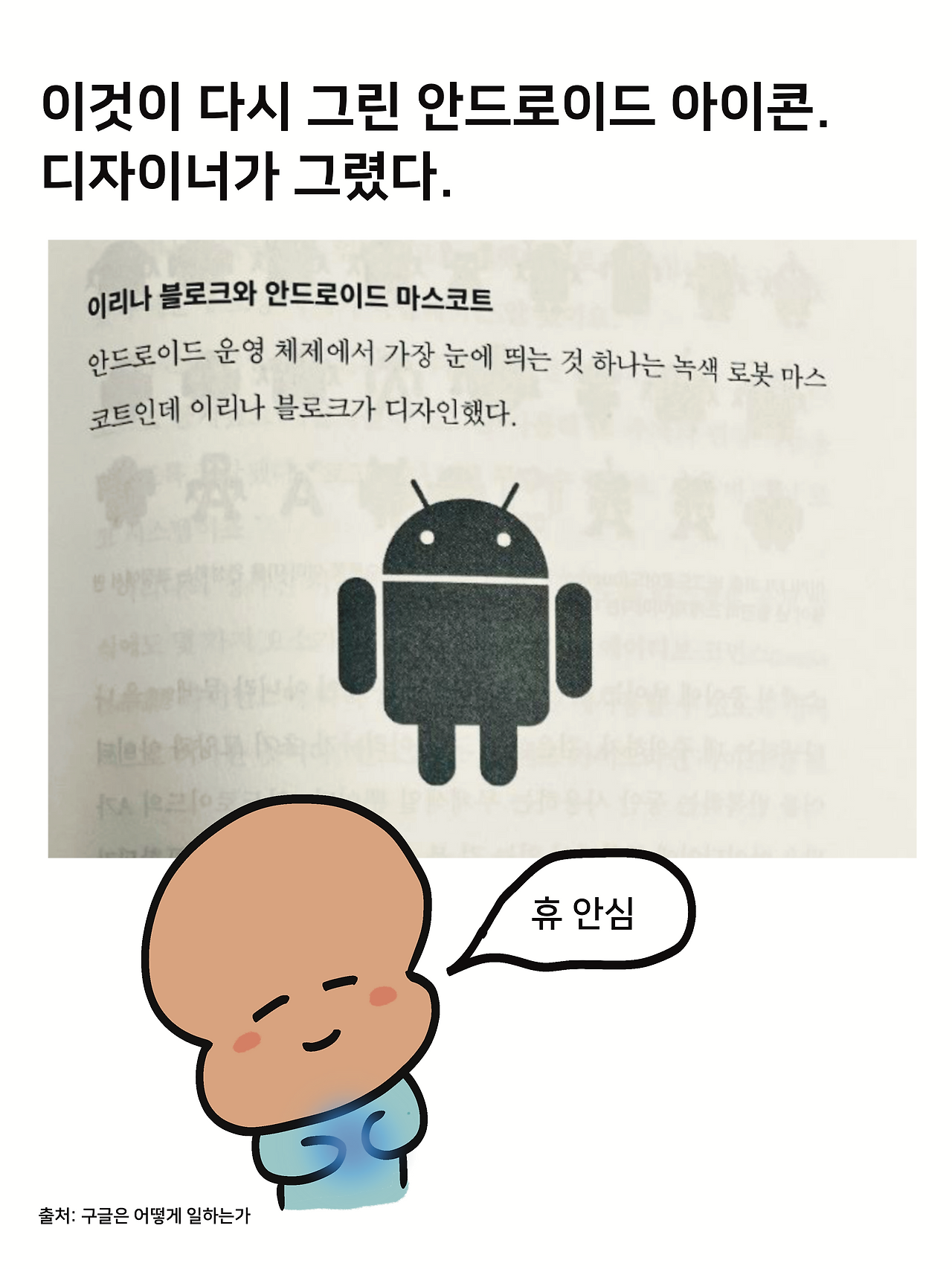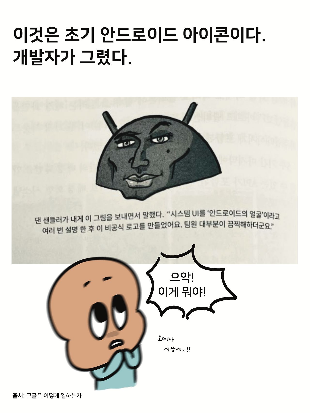 개발자들이 안드로이드 OS의 로고를 디자인한 것과, 그걸 보고 놀란(?) 디자이너의 재작업 결과물!
