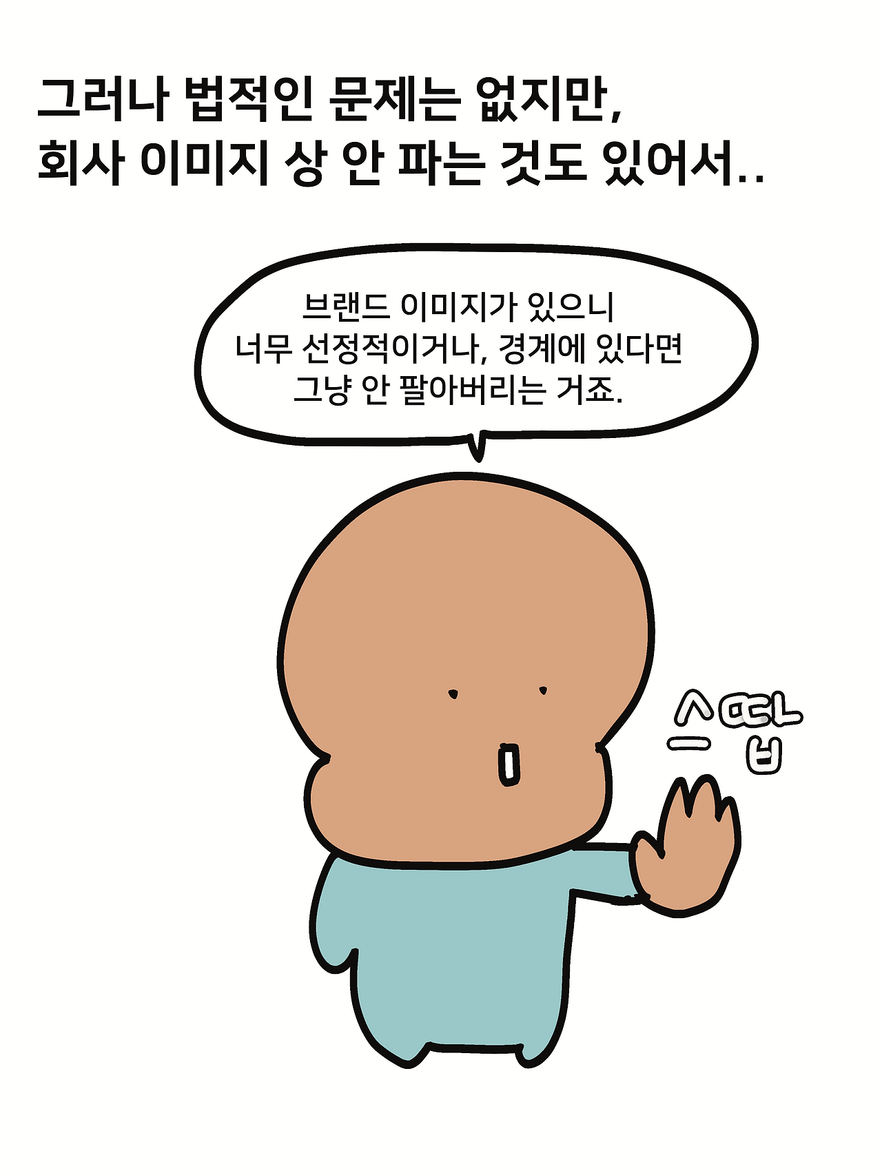 그 외에도 회사 규정상 팔아서는 안 되는 것은 다소 애매하기 때문에 케이스별로 봐야 했다.