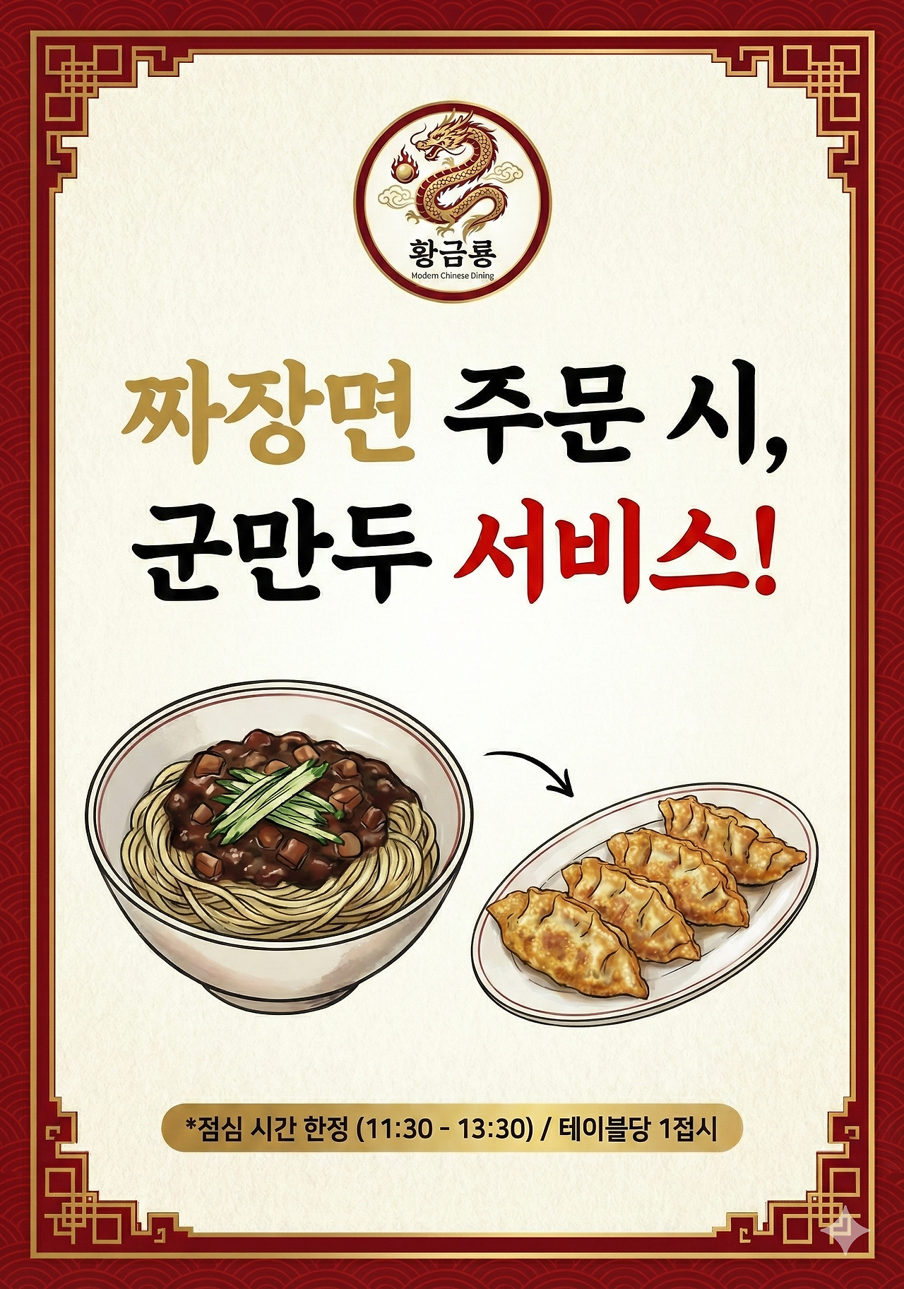 짜장면 주문하면 군만두 서비스로 주는 이벤트 홍보물을 만들어달라고 했다.