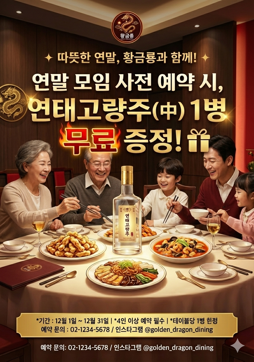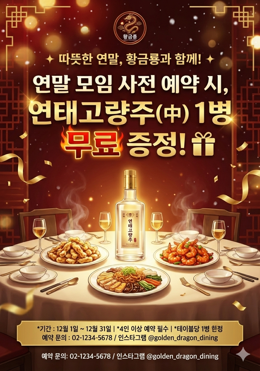 연말이니까 모임도 많을 것 같아서 연말 모임 예약하면 고량주 주는 홍보물도 만들어달라고 했다.