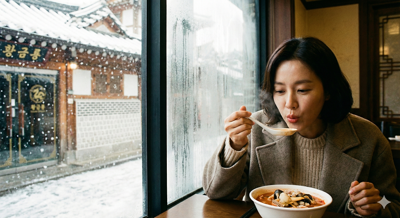 추운 날에 짬뽕을 먹는 화보 콘셉트로 이미지를 뽑아달라고 요청해 봤다.