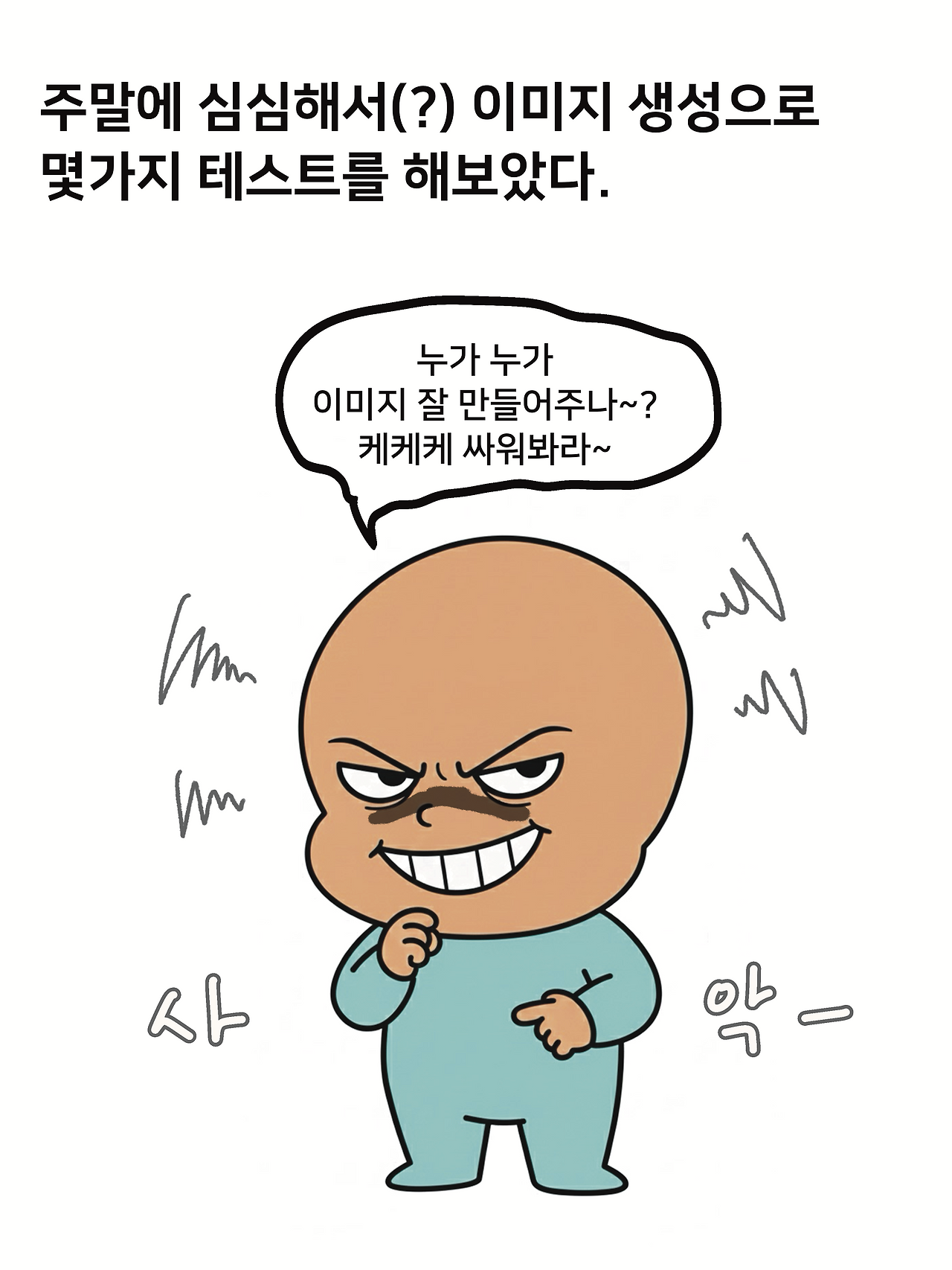 주말에 심심하던 차에 그록, 제미나이, 챗GPT의 이미지 생성형 기능을 시험해 봤다.