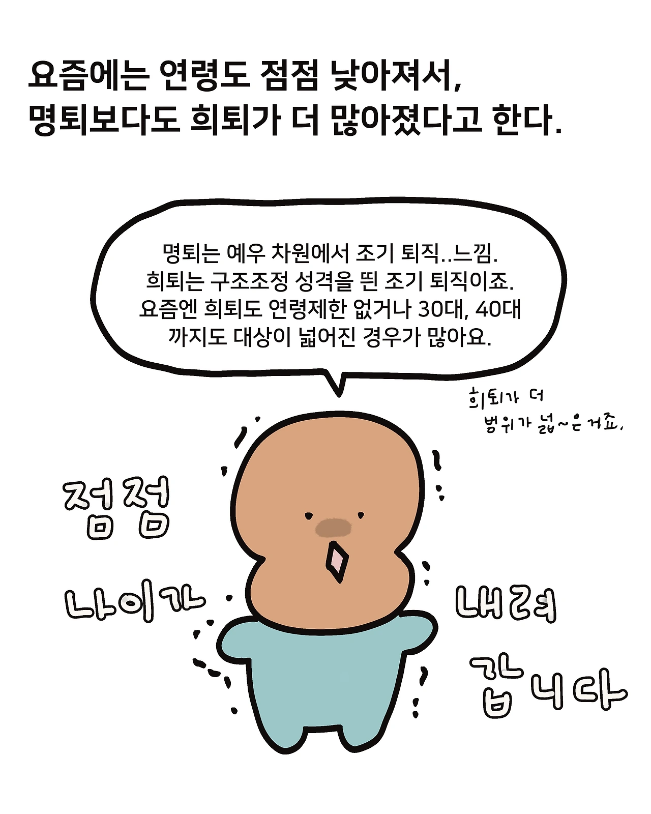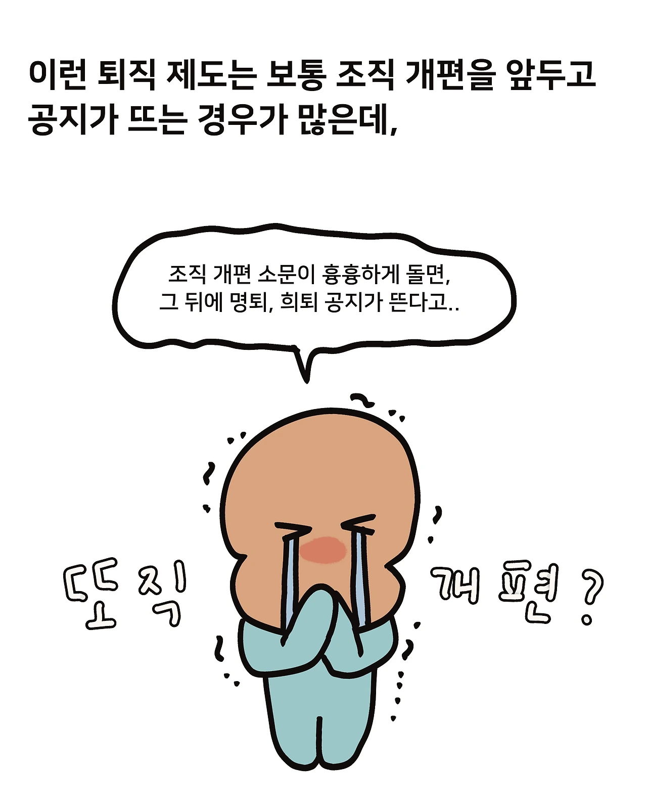 같은 팀의 시니어분께서도 언제까지 일할 수 있을까.. 고민하던 차에 희퇴 프로그램이 진행돼서 여차저차 희퇴 수락을 하고 퇴직하신 분도 계셨다.