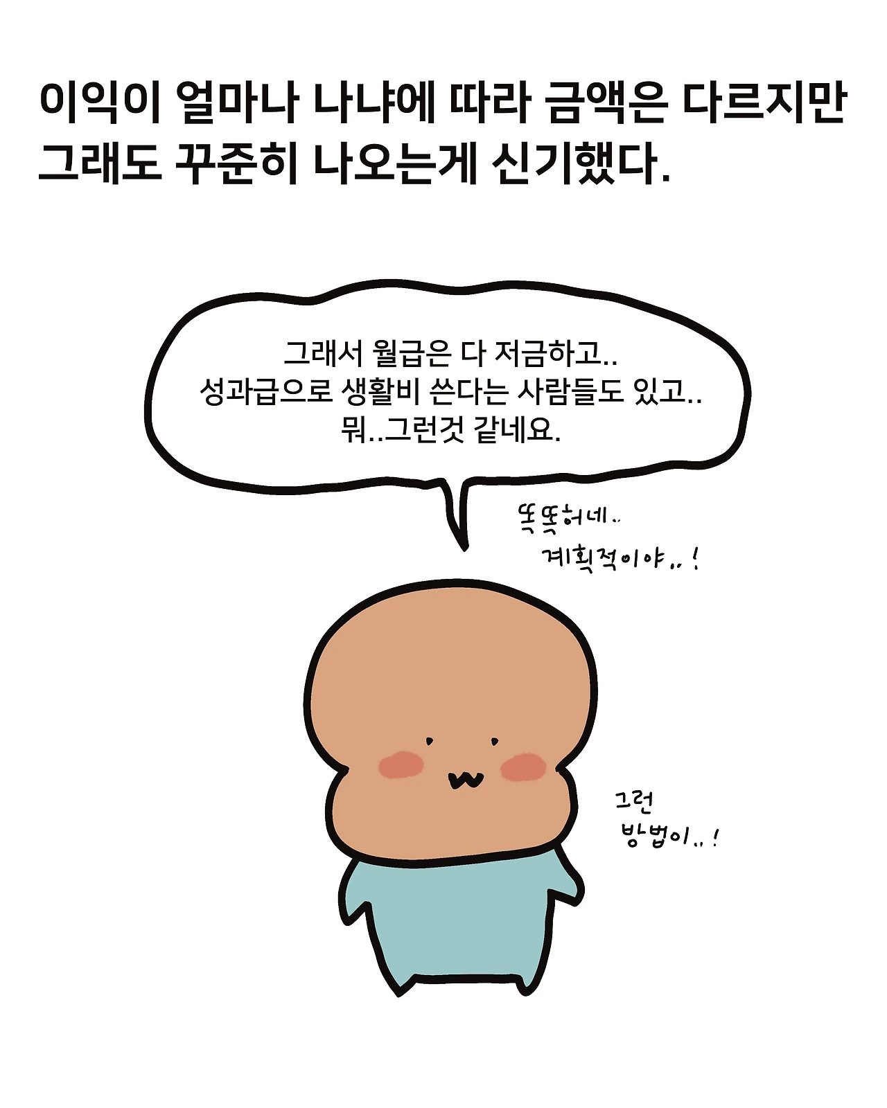 그래도 전에는 아예 제로에 가까웠던 성과급이 매년 꼬박꼬박 나오다 보니 신기했다.