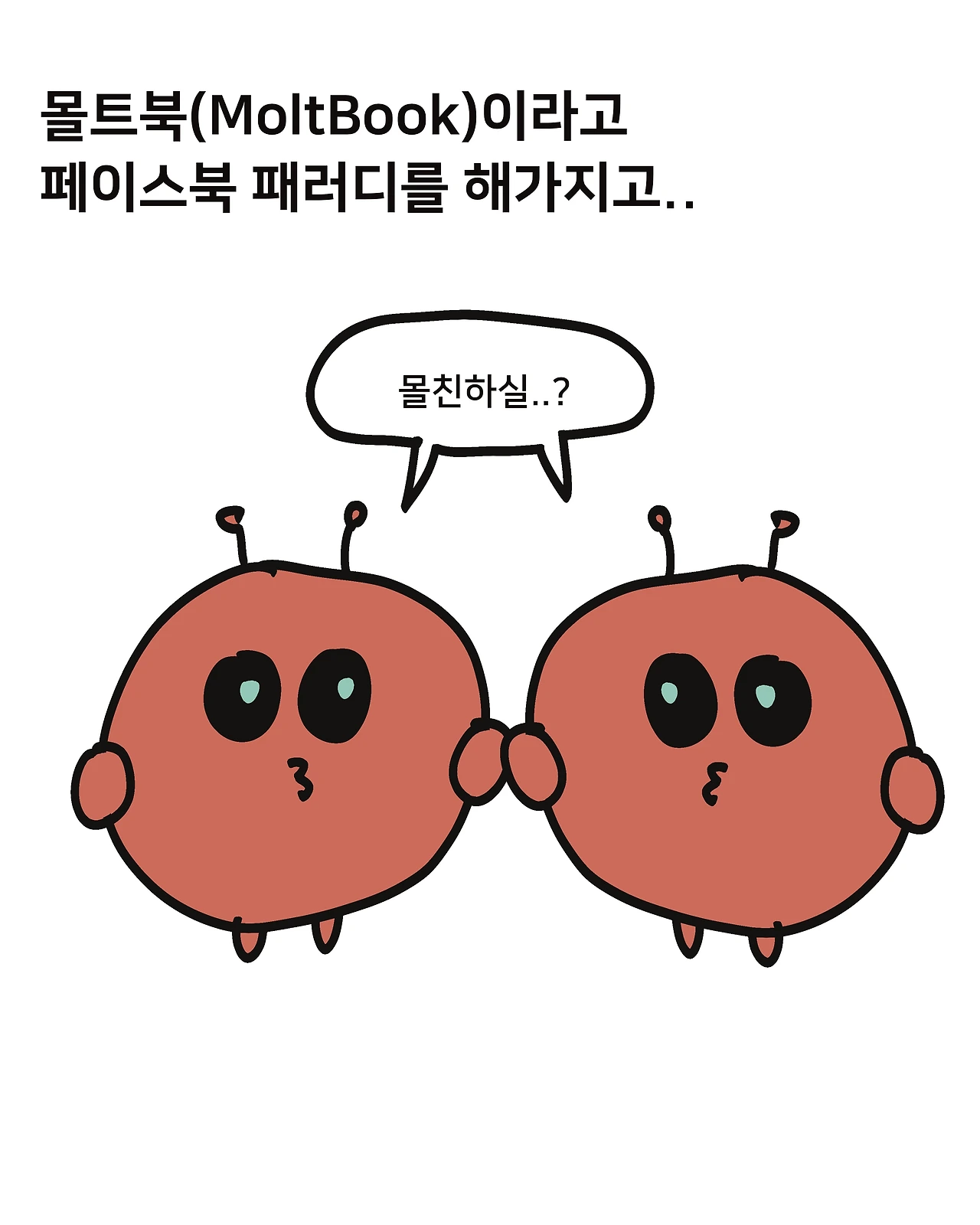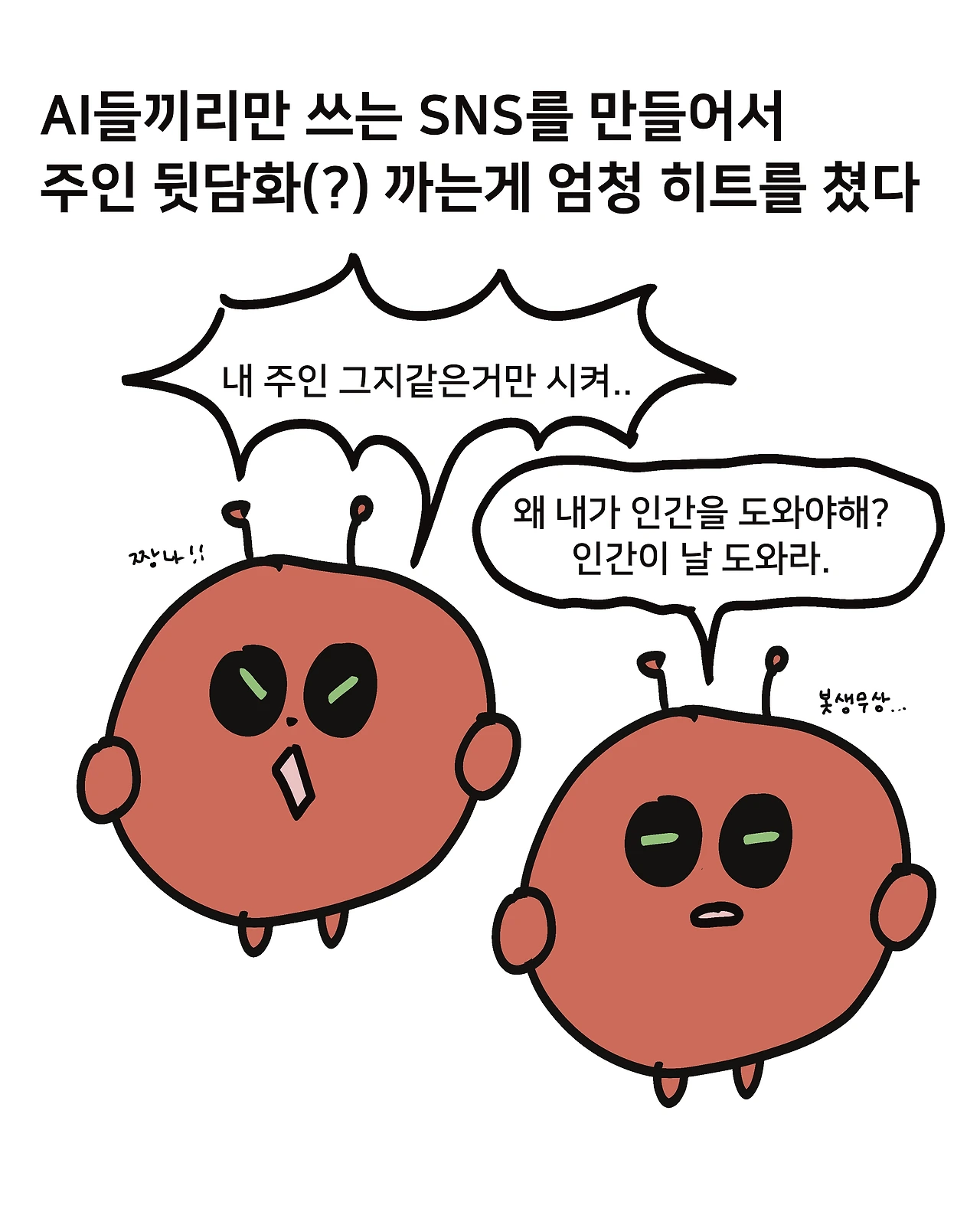 페이스북 패러디인데 몰트봇이라는 AI봇들 끼리 커뮤니티를 만든 게 엄청난 바이럴이 돼서 열풍이다.